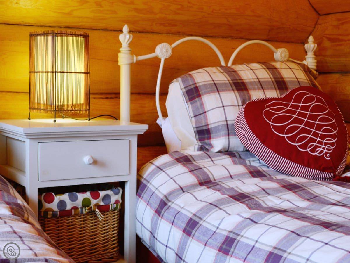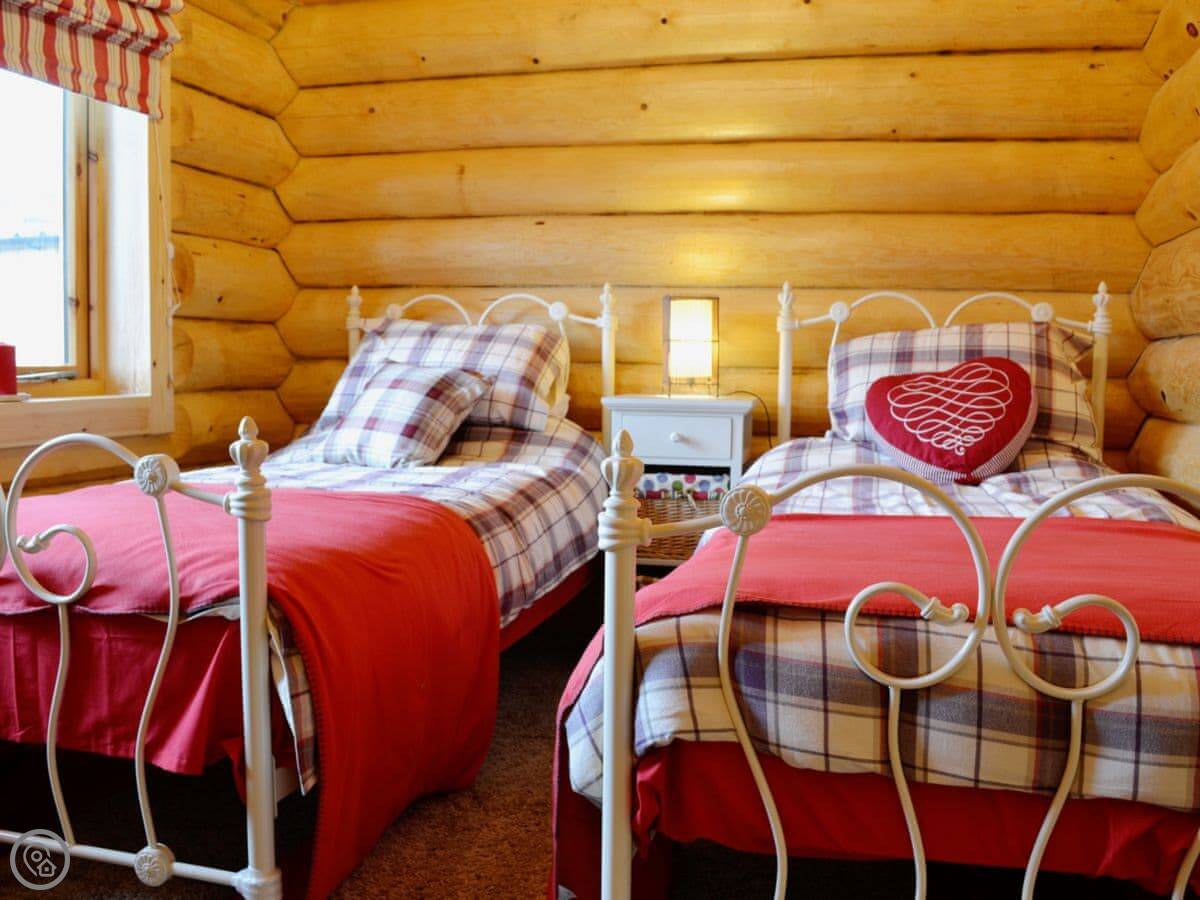 Grouse Lodge is a log cabin on our farm. It's a proper wood one, not just siding. It's detached and you've got your own enclosed garden. You can see the horses from there.