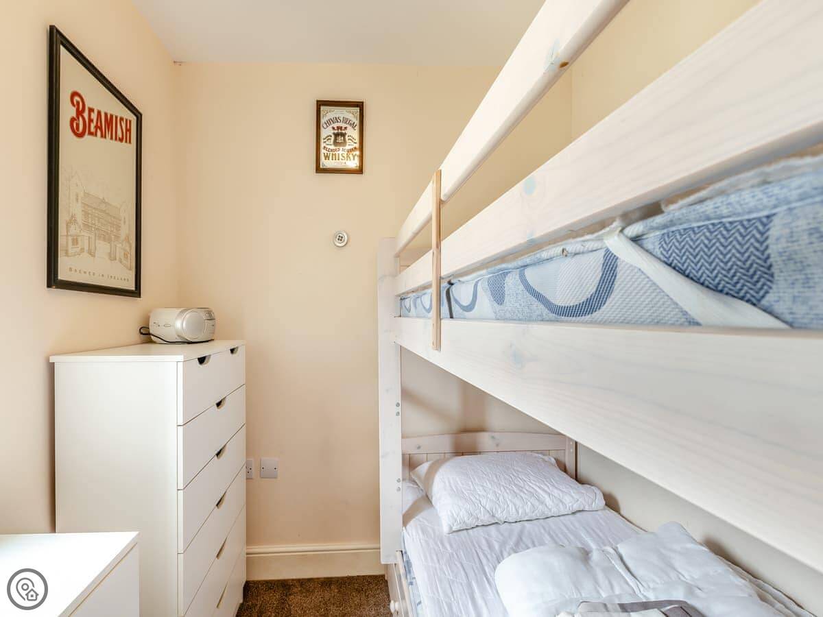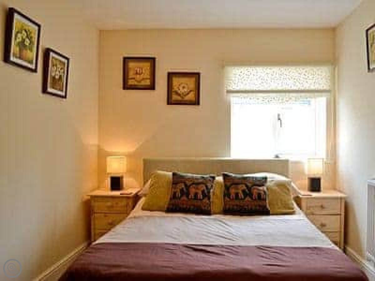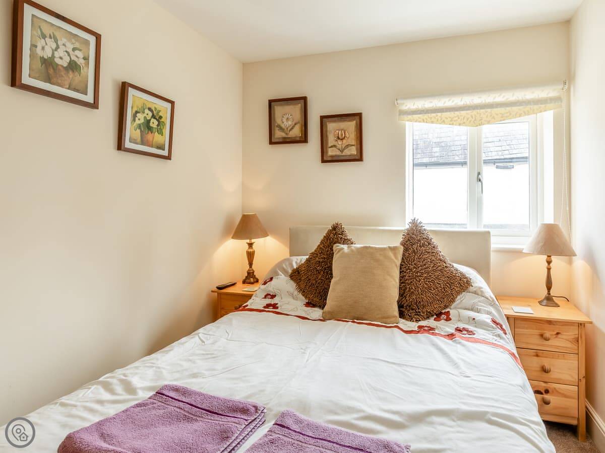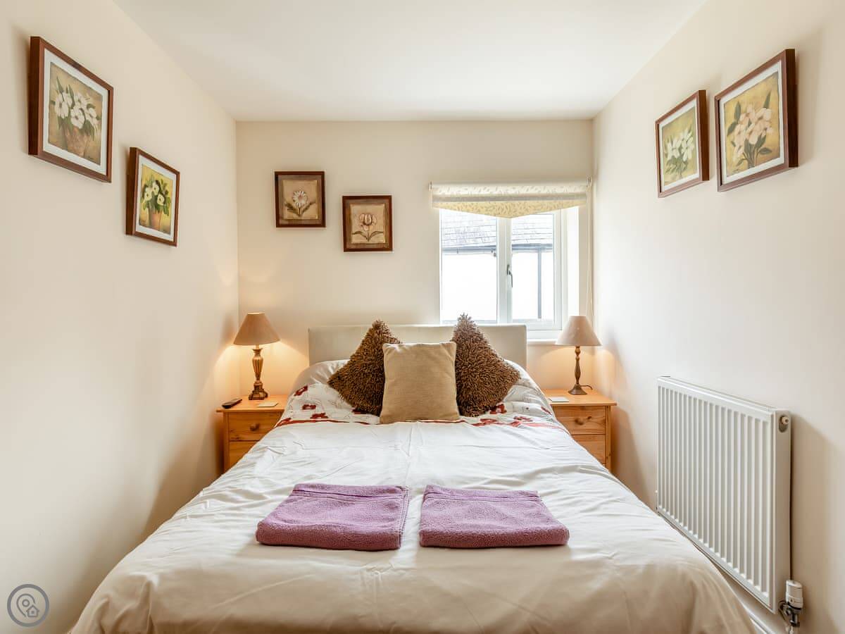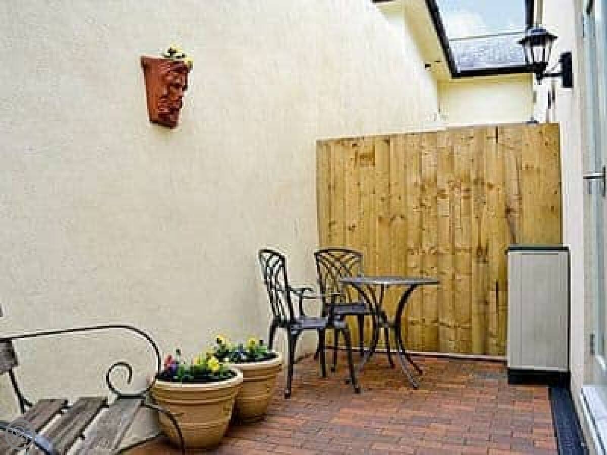 It sleeps four. Two bedrooms, one bathroom. It's got a 4 Star rating, so it's well-equipped and comfortable. There's a small enclosed garden out the back. Parking is on-site, which is useful in the town centre.