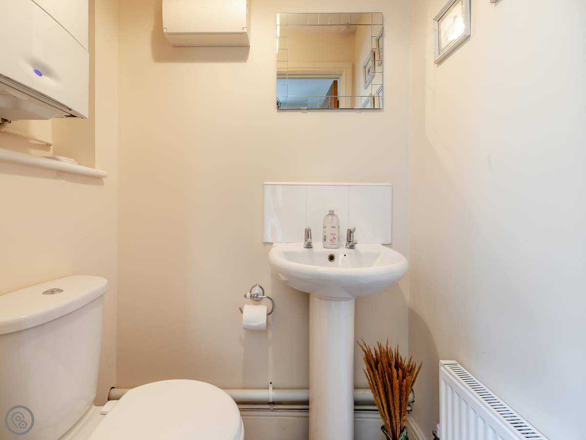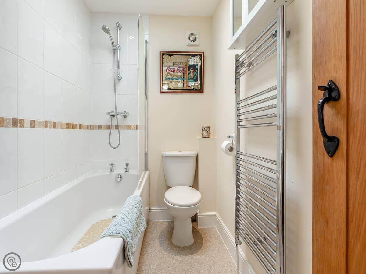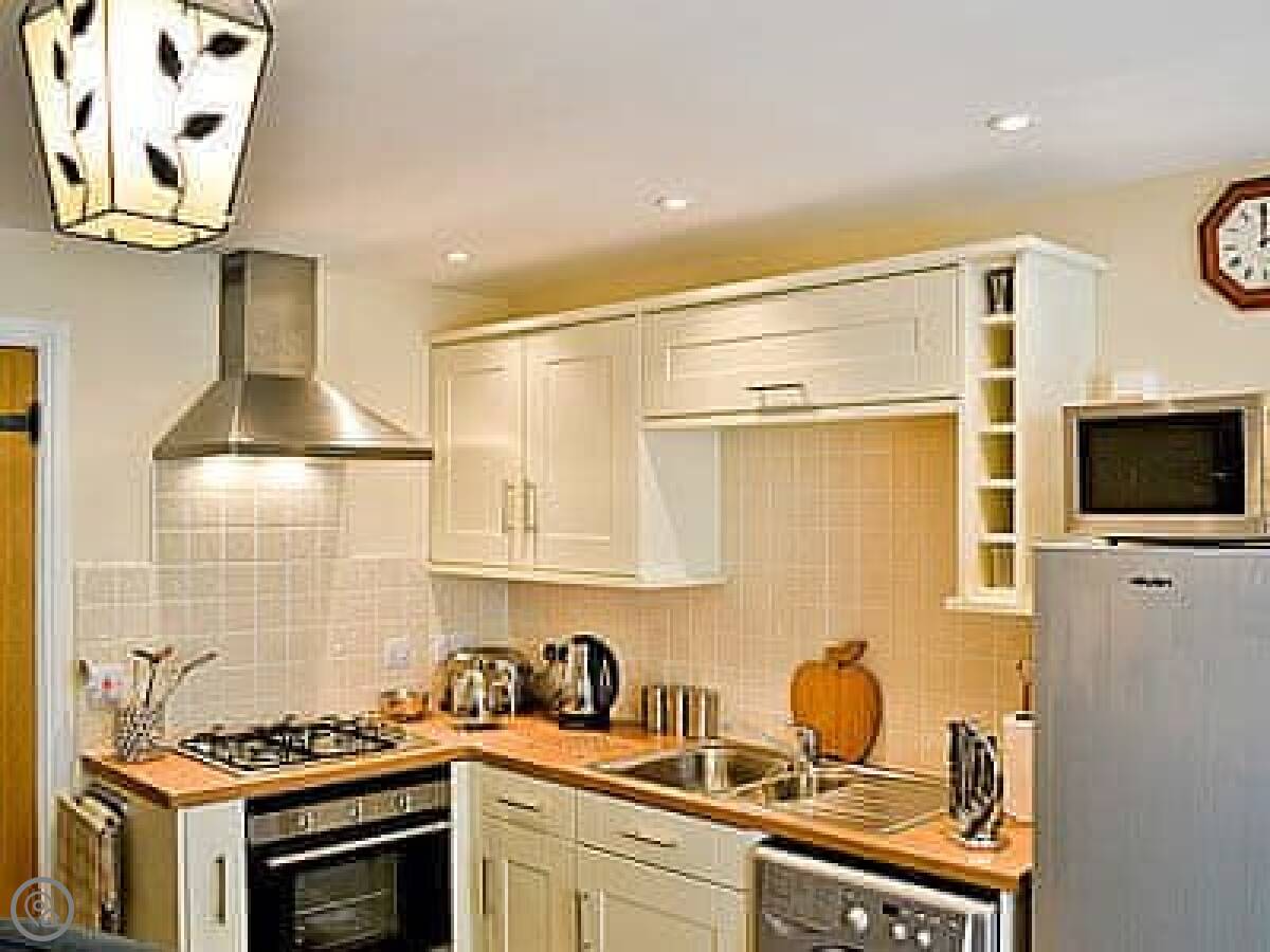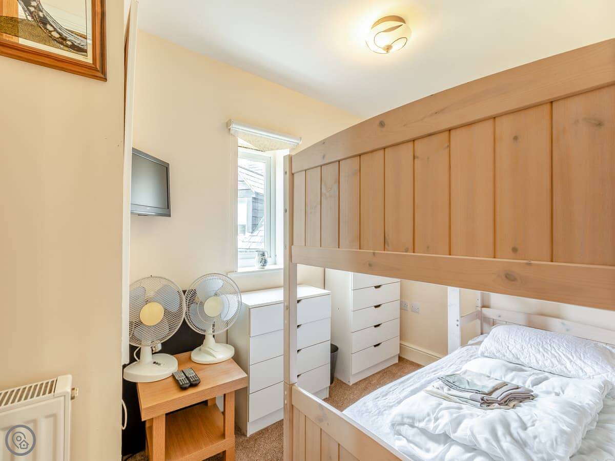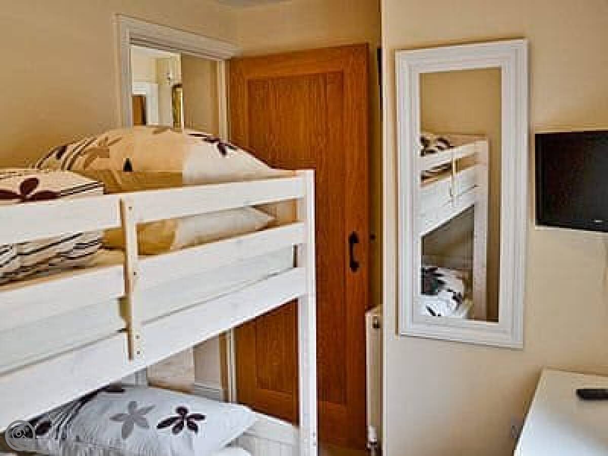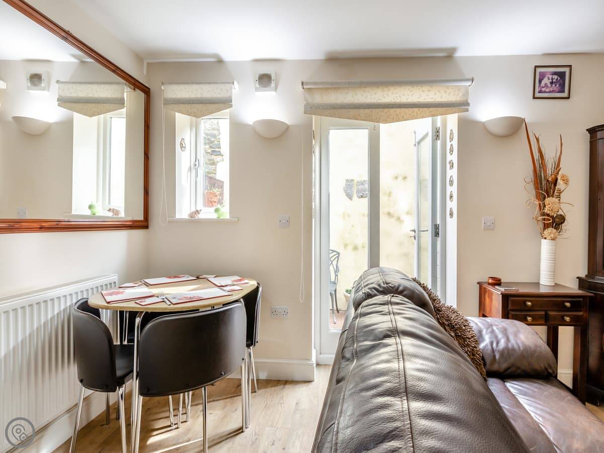 It sleeps four. Two bedrooms, one bathroom. It's got a 4 Star rating, so it's well-equipped and comfortable. There's a small enclosed garden out the back. Parking is on-site, which is useful in the town centre.