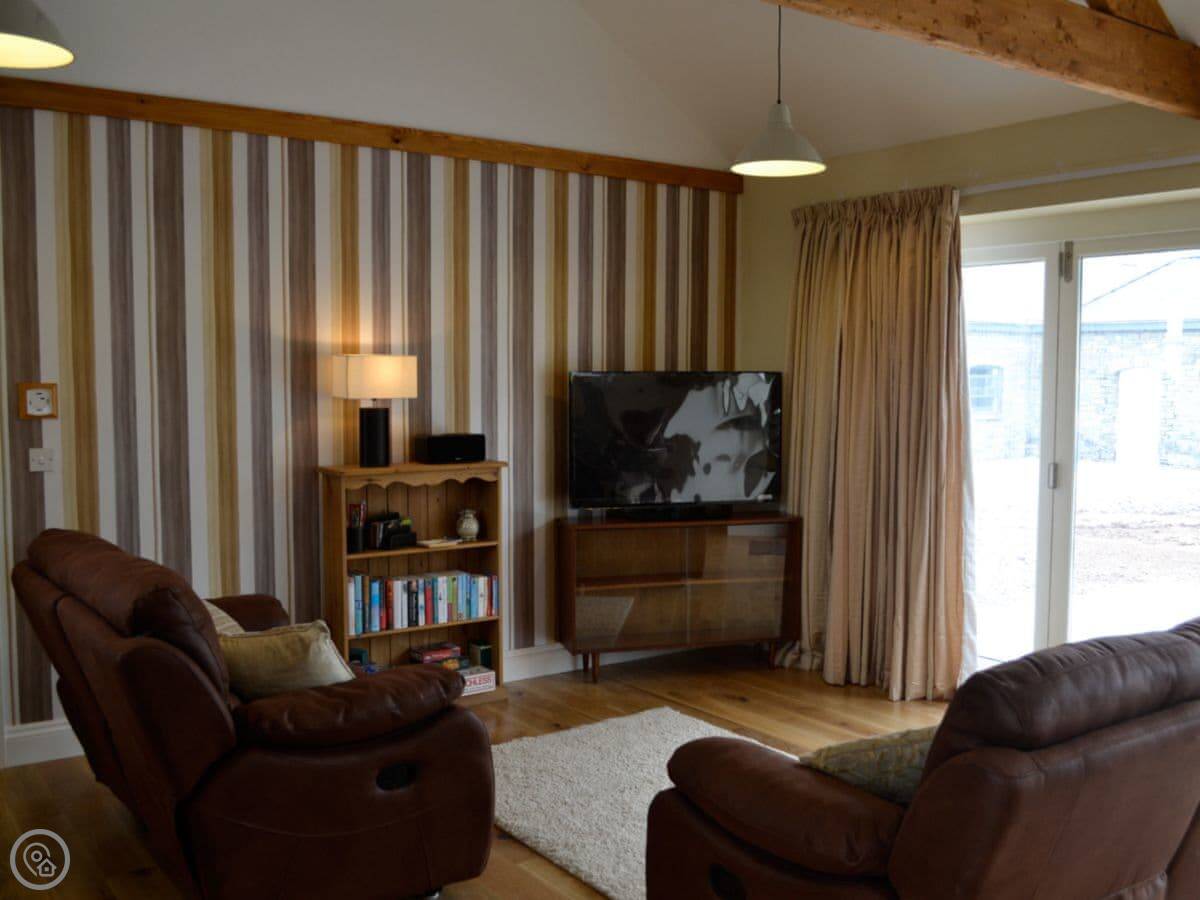 Ty Llo is one of three barns converted into cottages here. They're quite close together, about 10 metres apart tops, but yours is detached. It's in St Ishmael, Carmarthenshire, on a farm a bit inland from Ferryside.