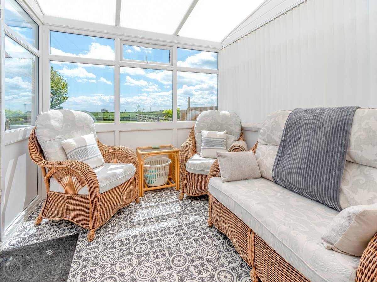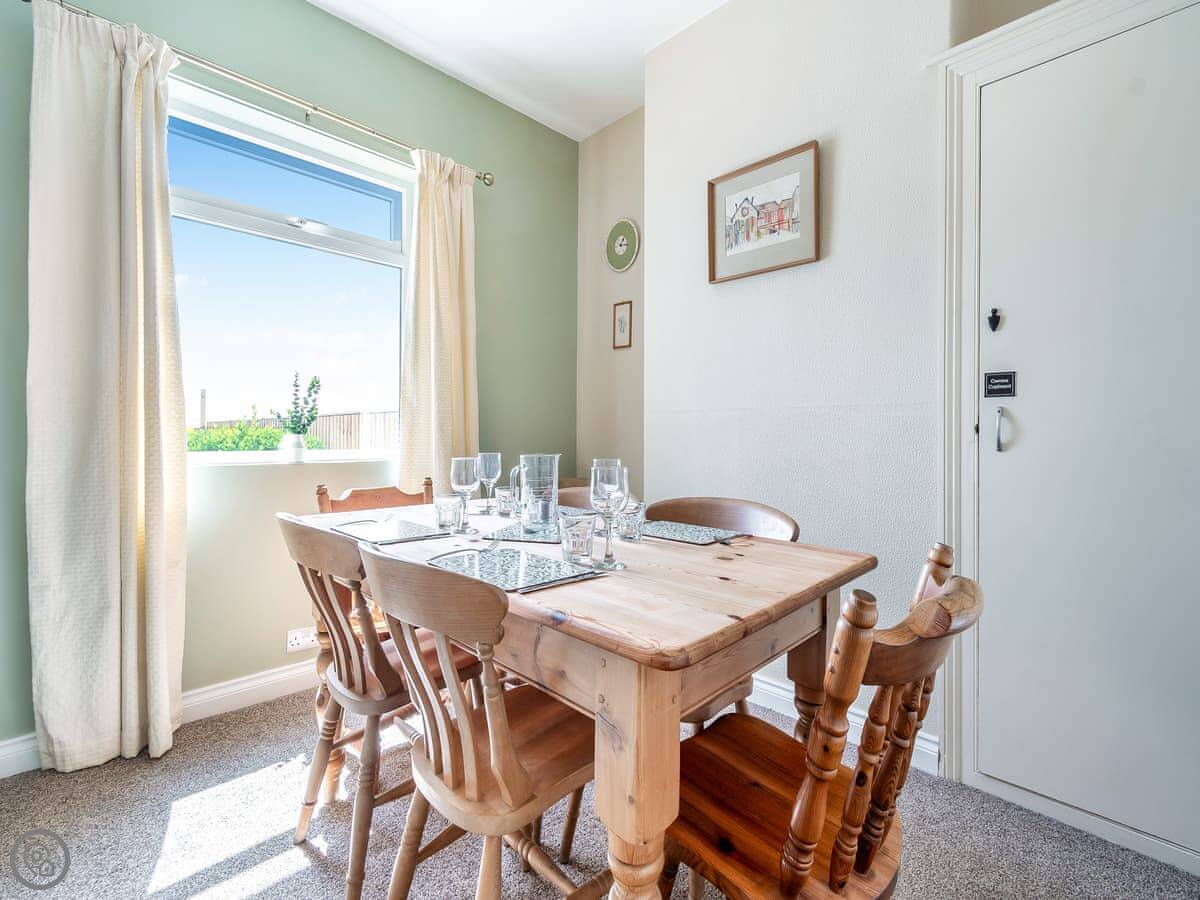 There's a proper dining room with a big table, and a conservatory at the back where you can sit. The garden is enclosed, which is handy if you're bringing a dog. We allow one.