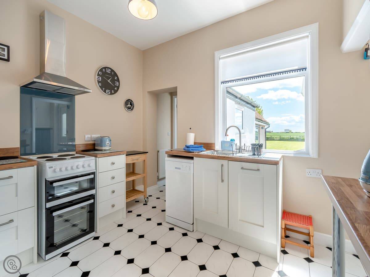 It has the usual stuff: WiFi, TV, washing machine, dishwasher. Bedding and towels are included. There's a cot and a highchair if you need them. Parking for two cars on the drive.