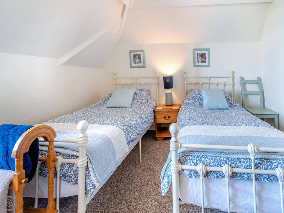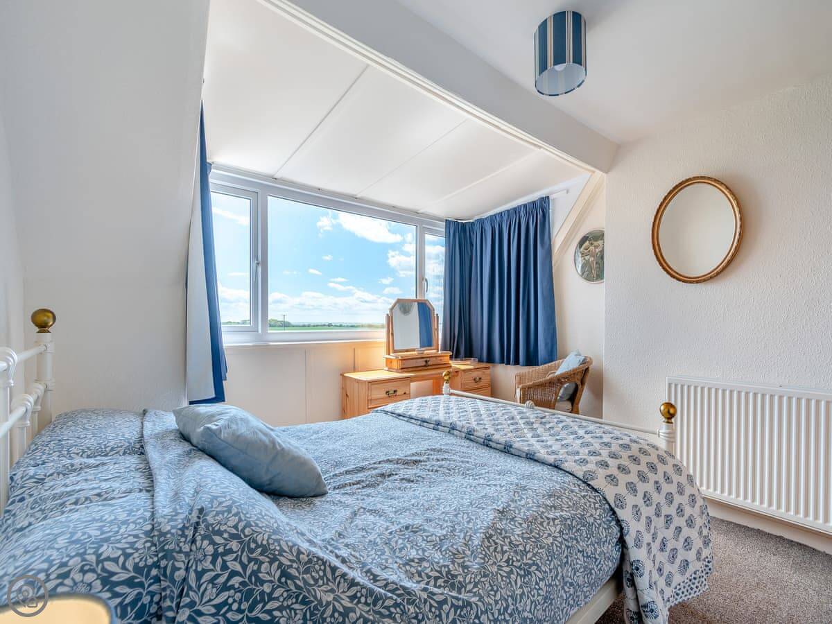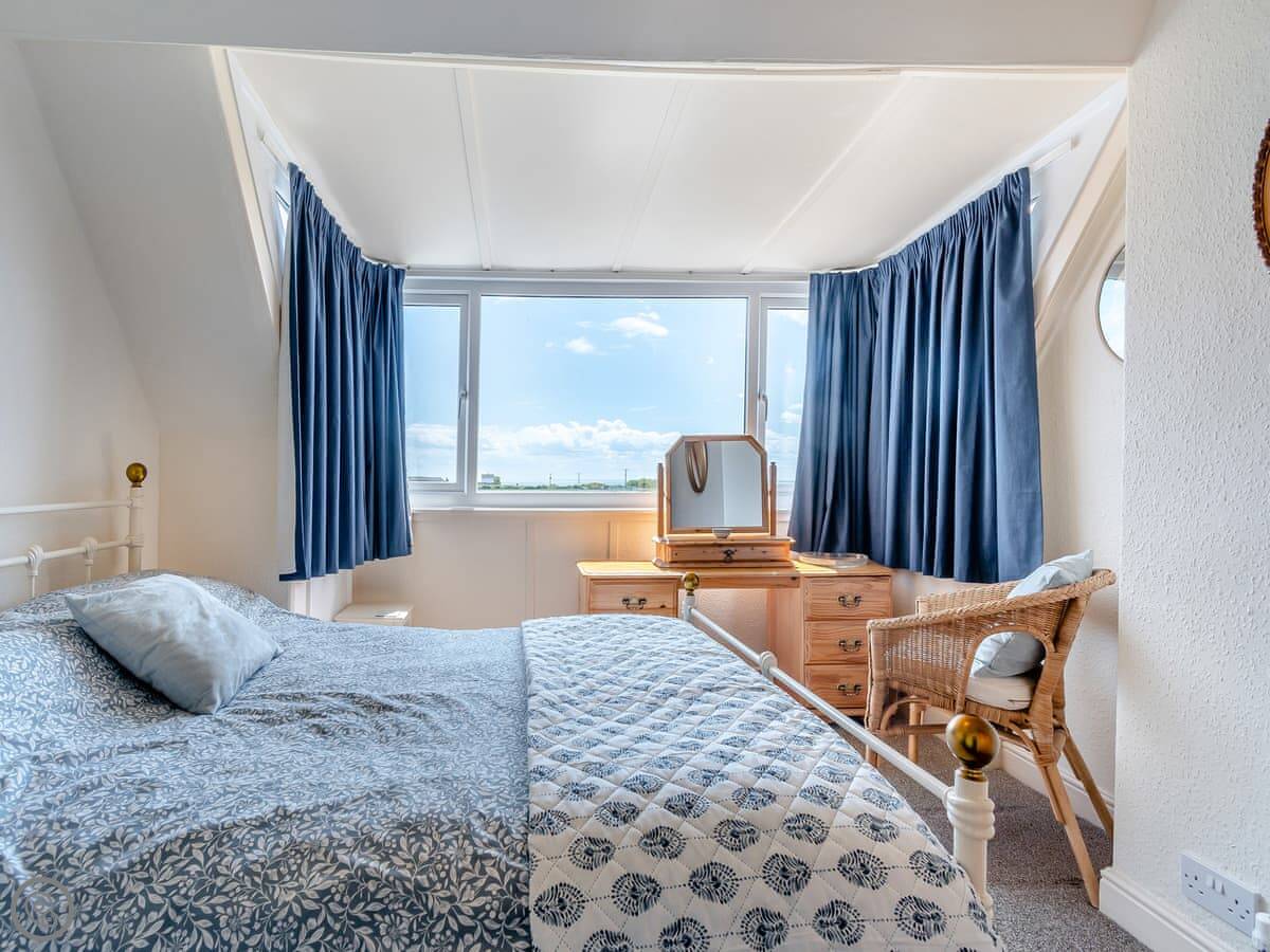 It sleeps six. Three bedrooms, with two bathrooms. One's an ensuite. It's got a 4 Star rating, so it's well-equipped and comfortable. It's a dormer, so the ceilings in the two front bedrooms slope quite a bit. You get used to it.