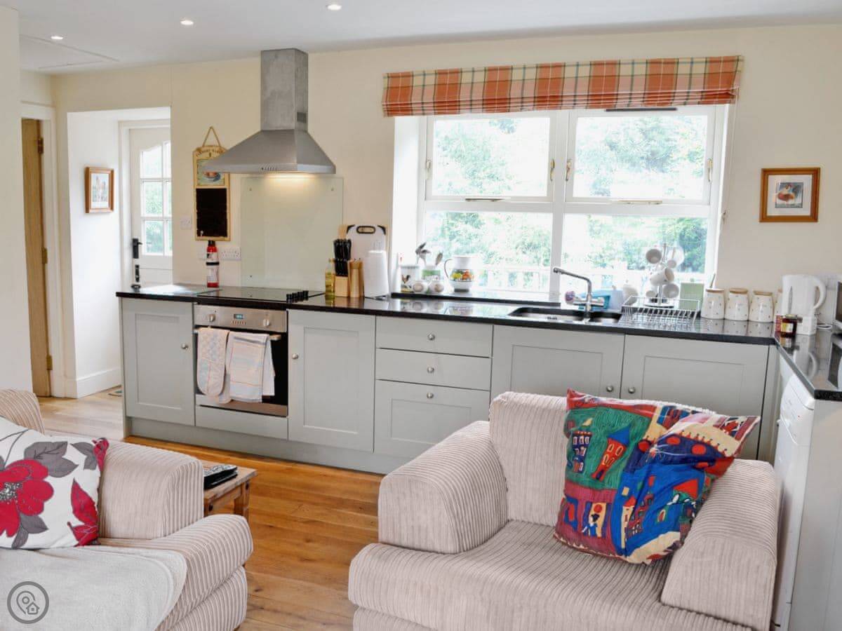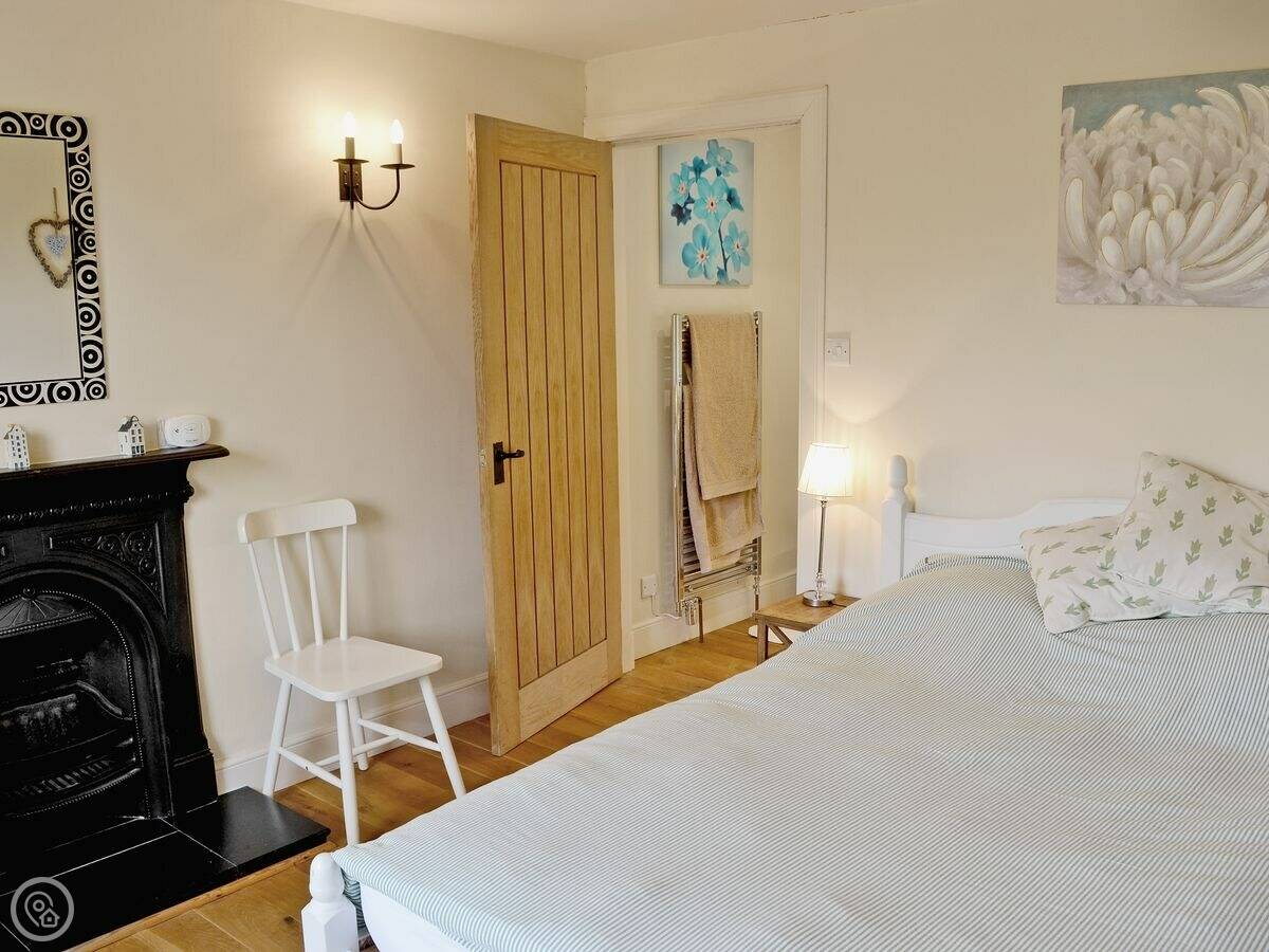 The place sleeps two. One bedroom, one bathroom with a shower over the bath. It's got a 4 Star rating. It's comfortable, clean, and has everything you'd need. It's open plan downstairs, with a woodburning stove. We leave logs for the first fire. The main light switch for the living area is in an odd spot, by the stairs.