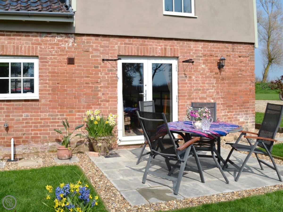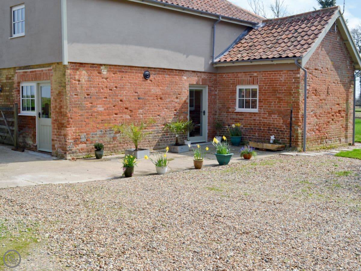 Honeypot Cottage is a detached place out in the fields near Metfield. It's very quiet, just our land around it. You get the garden to yourselves, it gets the sun. The garden is lawned and private.