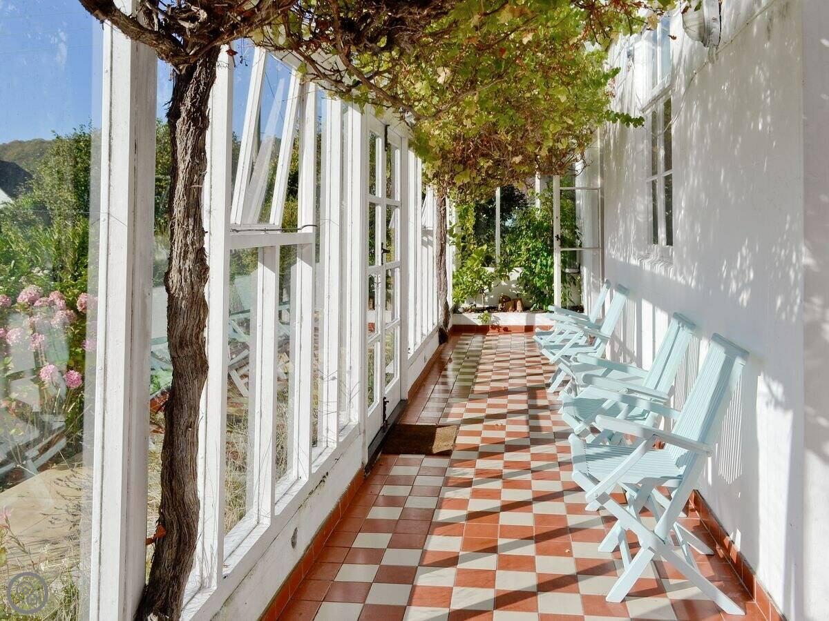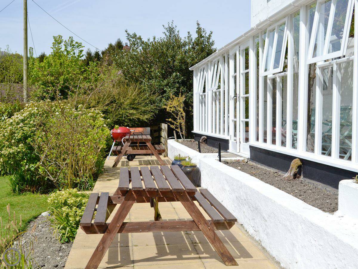 The house is next to our own place, so we're nearby if you need anything. You have the whole garden to yourselves. There's a conservatory that looks out over the lawn.