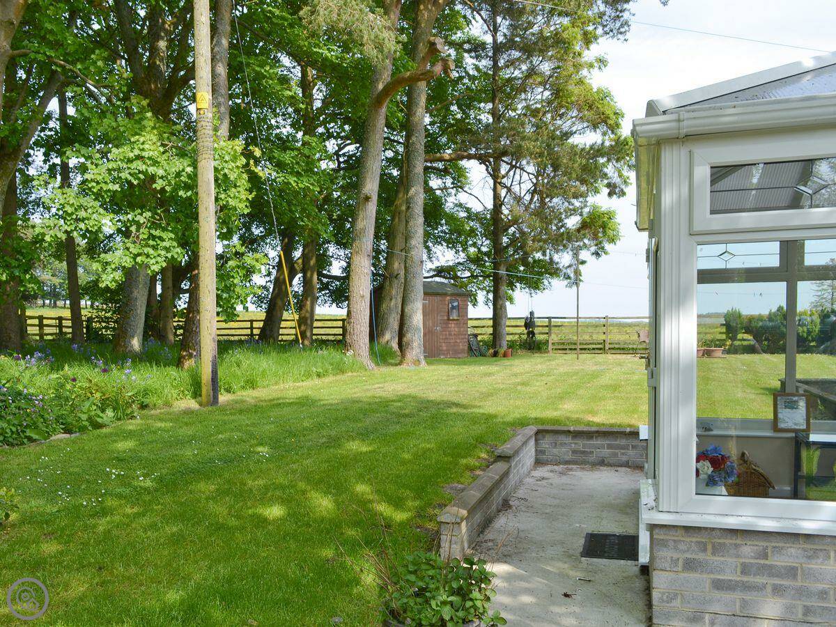 The main thing here is the space. You've got over eleven acres of private woodland and grounds to wander through. There's a picnic spot in the trees, a pond, and the hens. There's also a public footpath access.