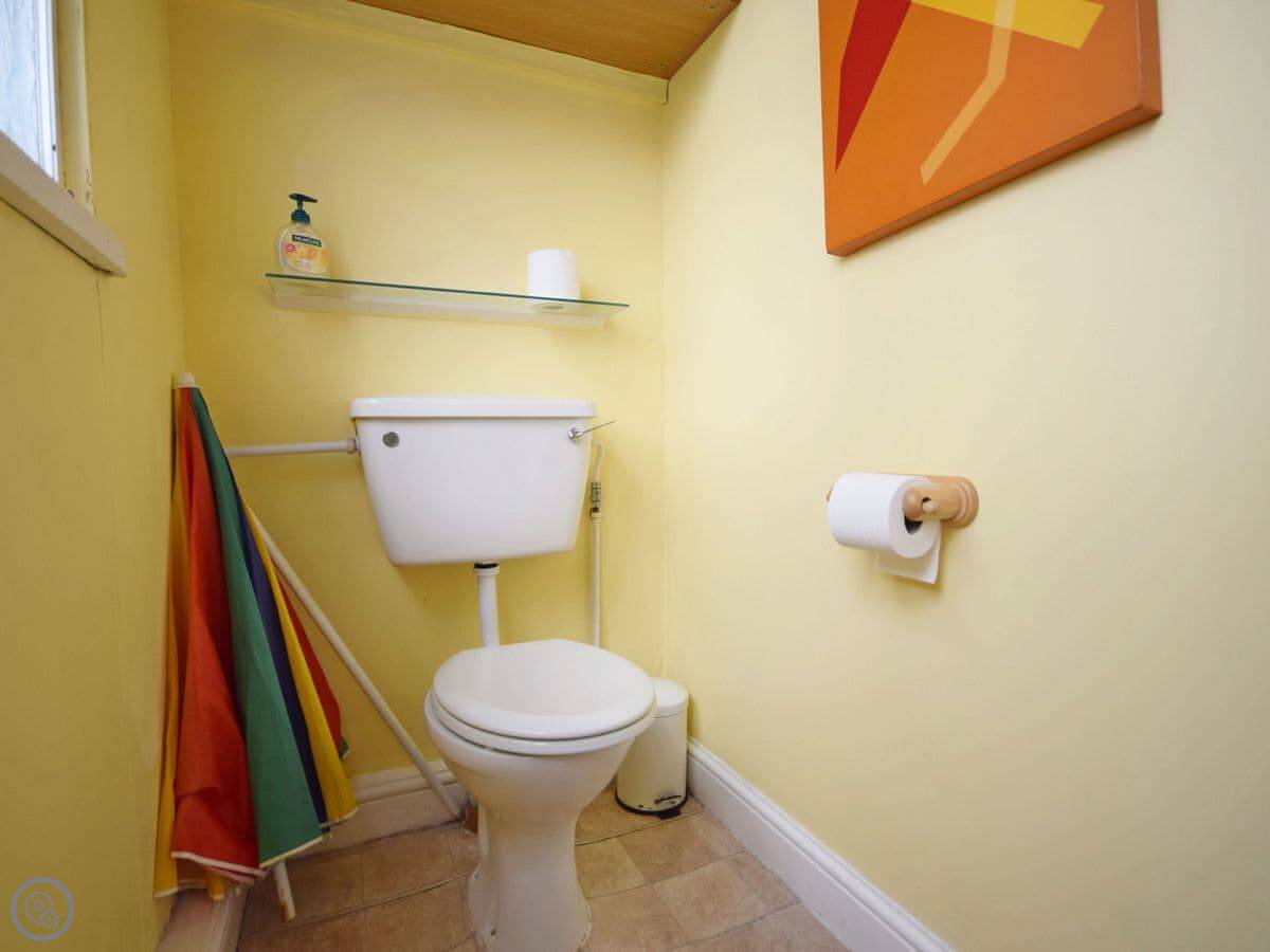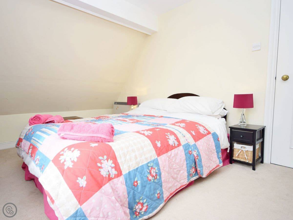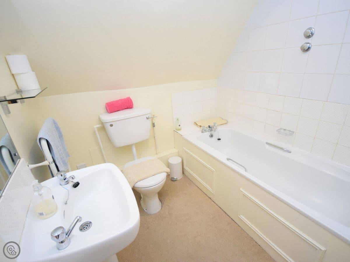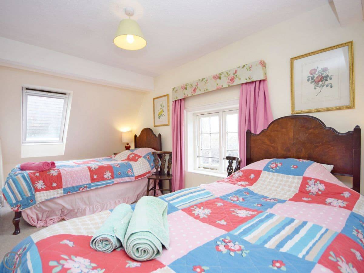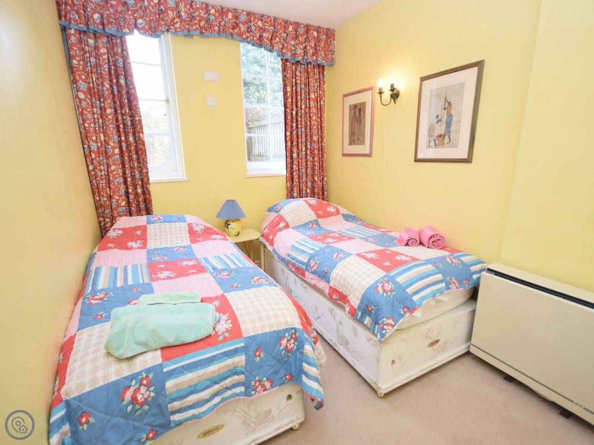 It sleeps six. Three bedrooms and one bathroom. One twin bedroom is downstairs. Upstairs there’s a king-size room and another twin. There’s also a separate downstairs toilet. The rating is 3 Star, so it’s comfortable and clean but not high-end.
