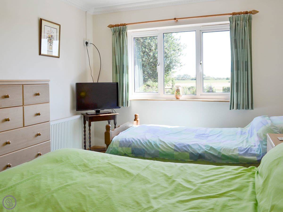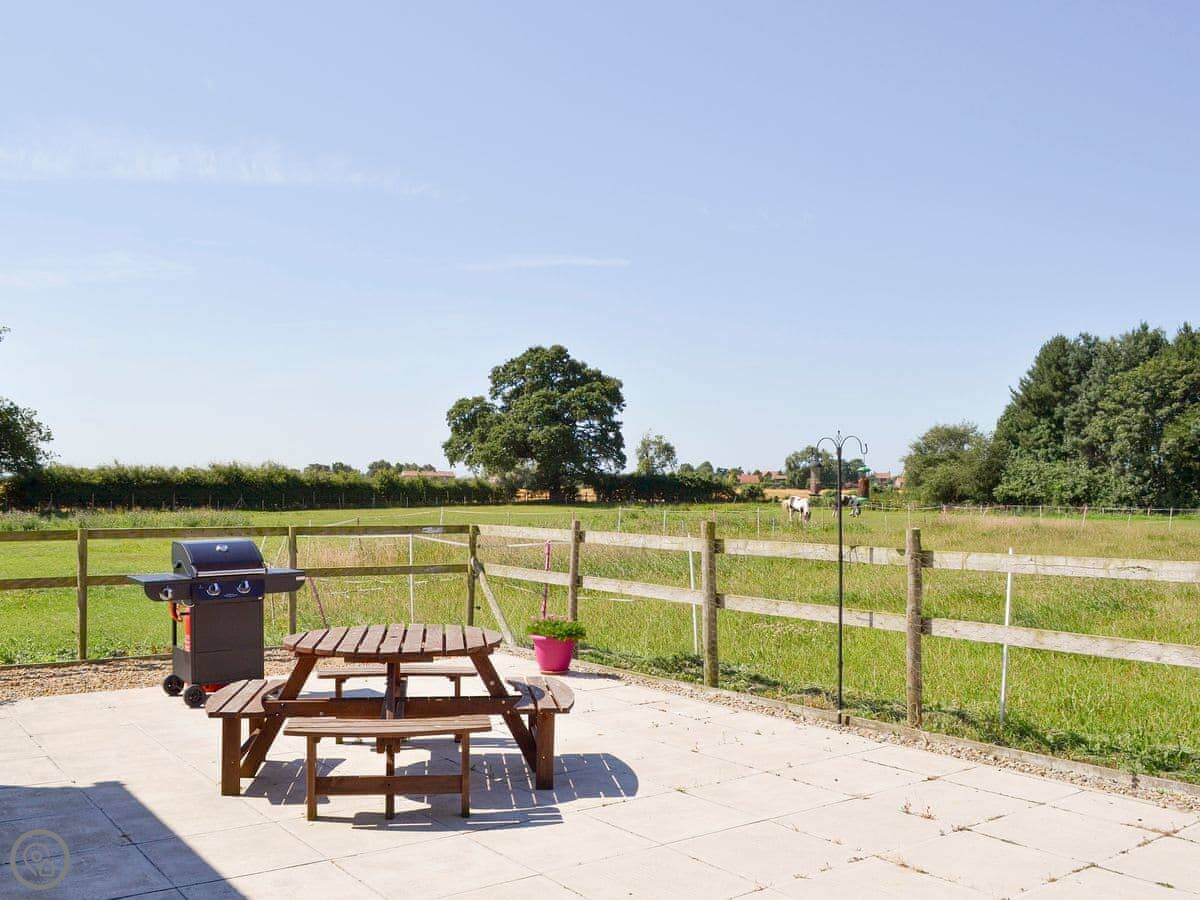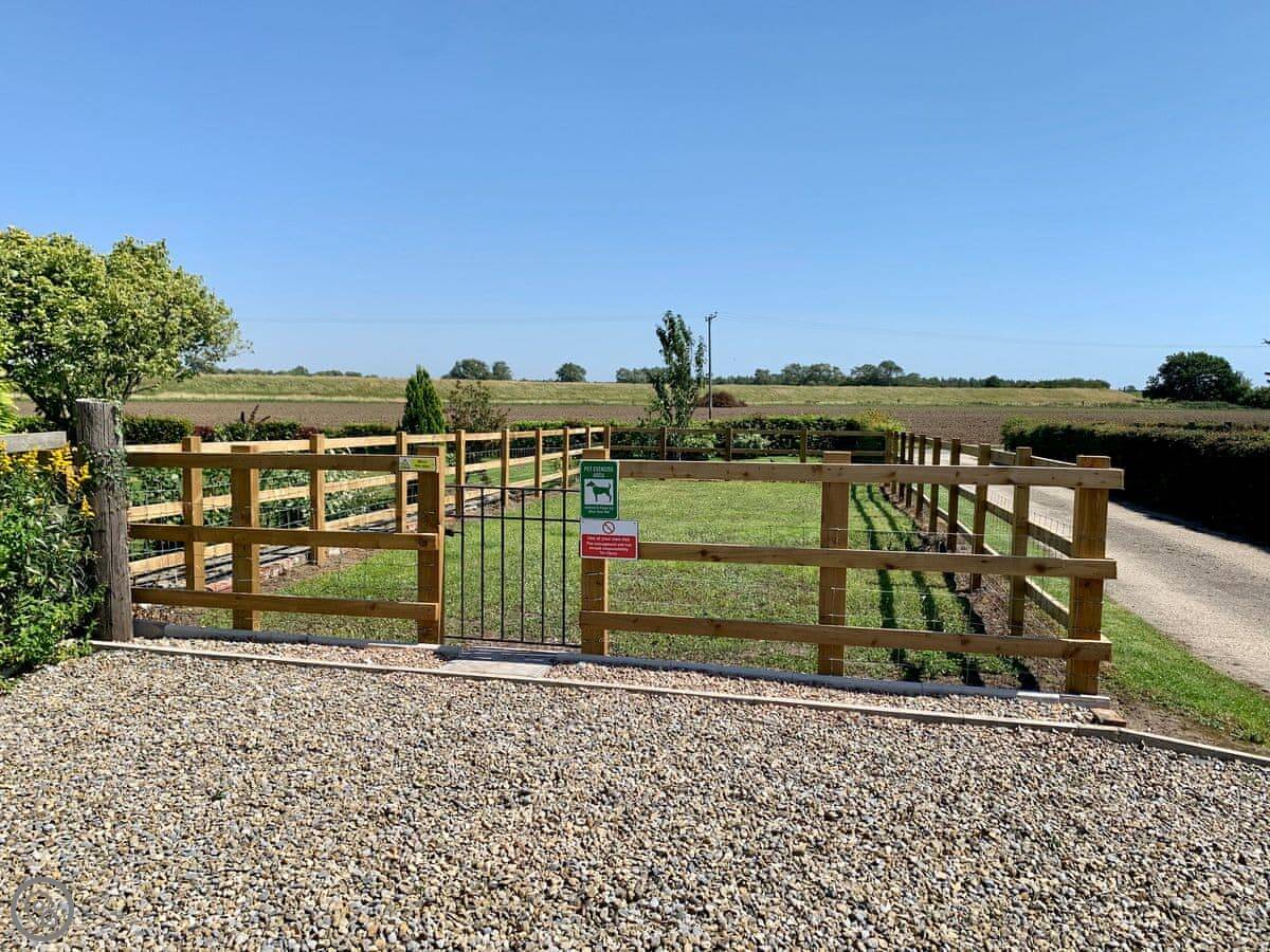 You've got your own enclosed garden patio with a table and a barbecue. There's also a bigger fenced-off area for dogs to run around in. We accept two pets.