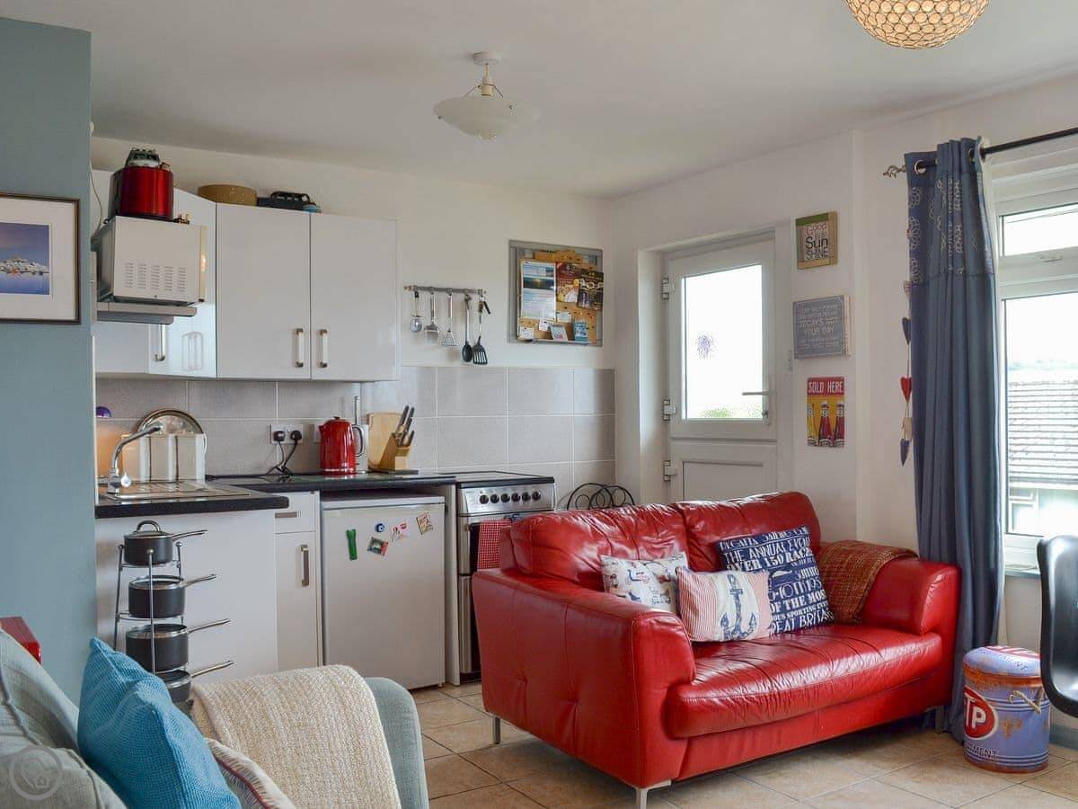 Inside, it's open plan. There's a TV, a washing machine, and bedding is included. The patio has garden furniture. One well-behaved dog is allowed.
