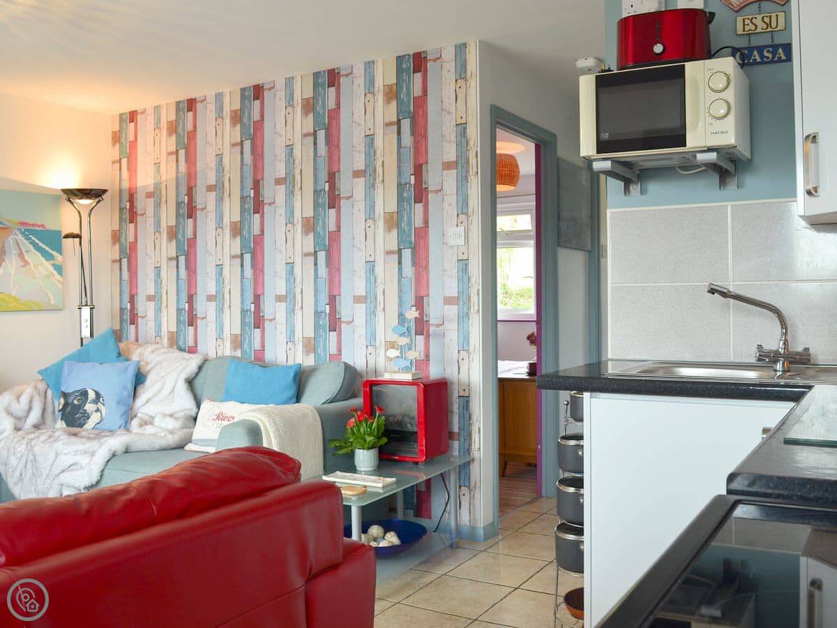 Woolacombe Folly is on a holiday park just above Woolacombe village. It's a terraced holiday chalet, which means you have neighbours but you also get your own private sitting-out area. You can see the sea from there.