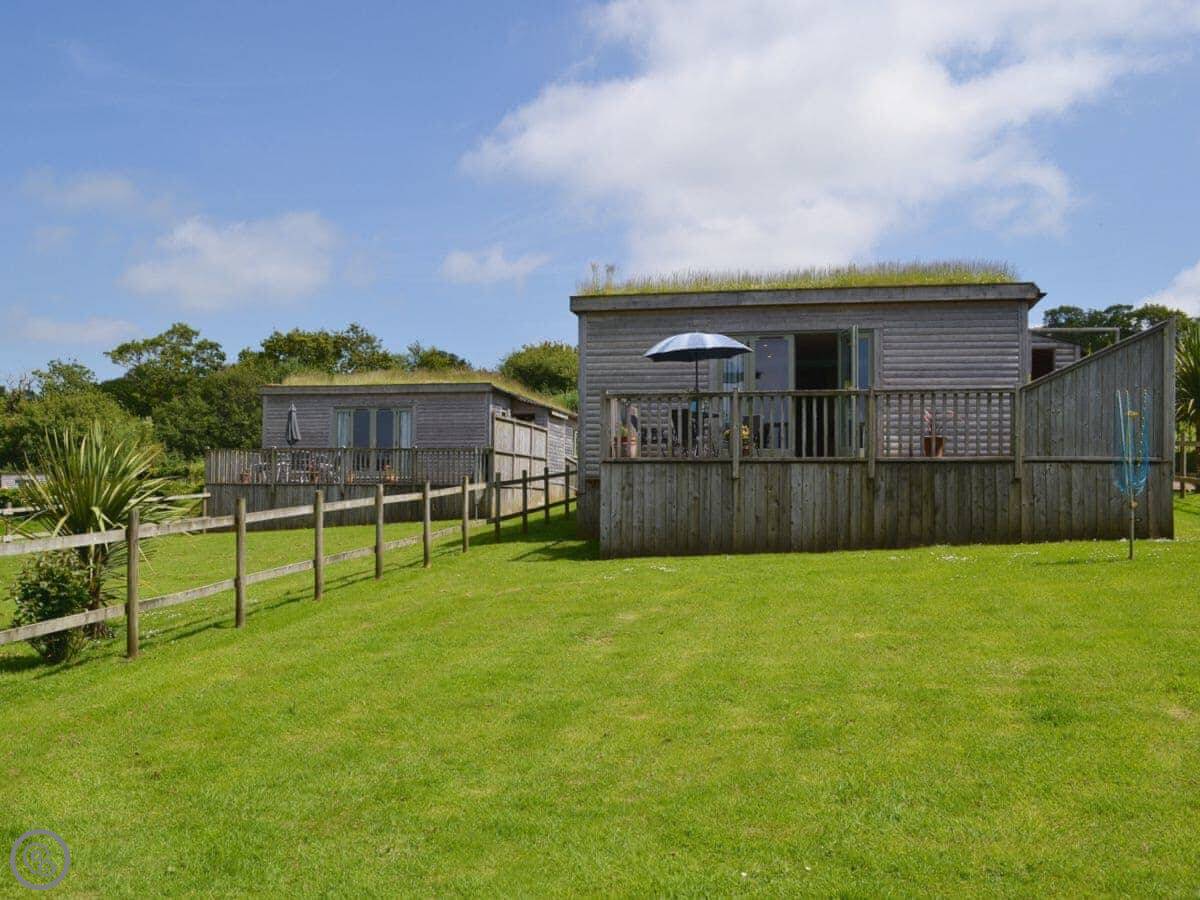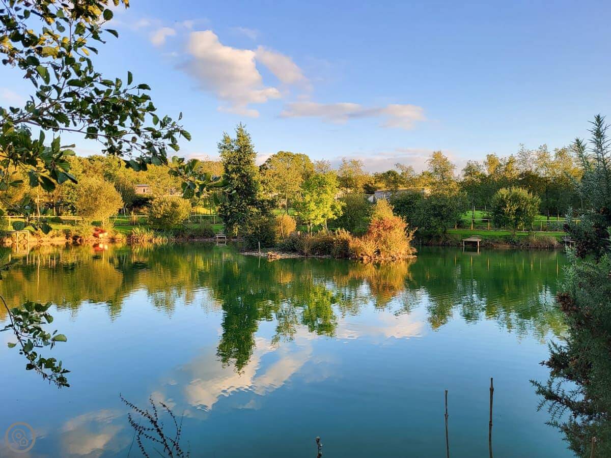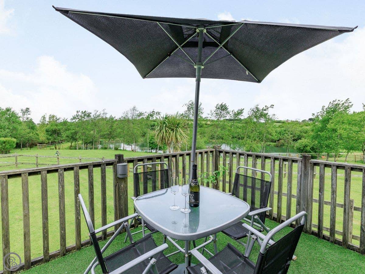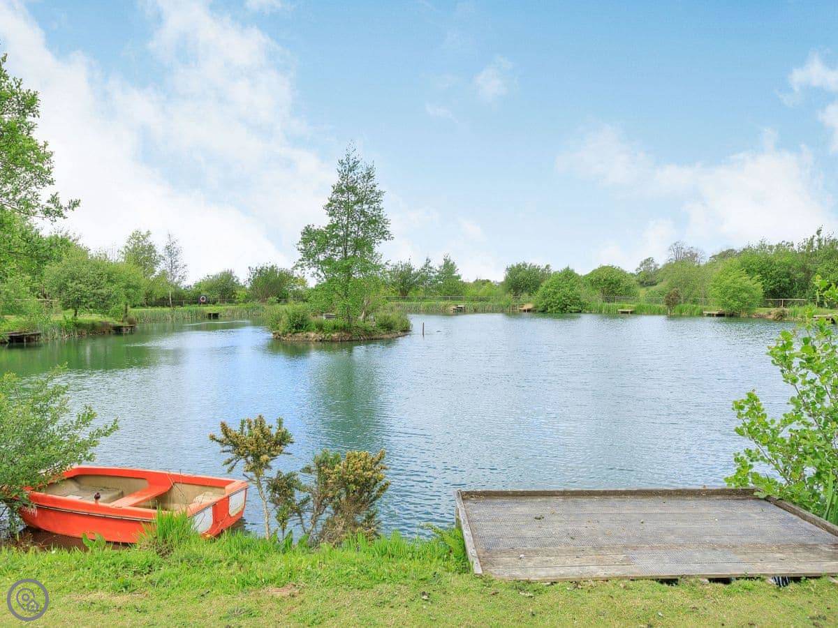 Bluebell Lodge is one of a few lodges on the site near Whimble, just outside Holsworthy. It's detached and you've got your own decking out the front. The view from the living room is over the fishing lakes and fields.
