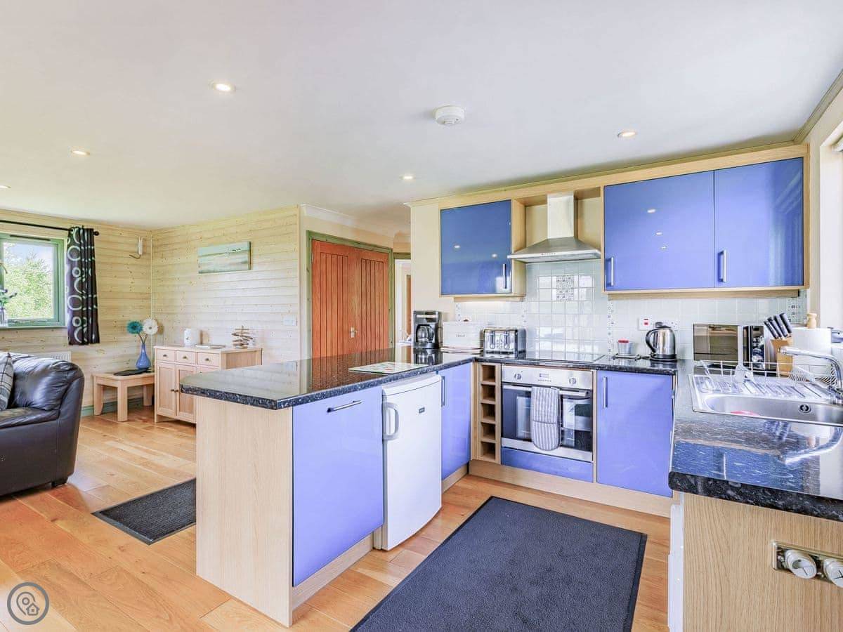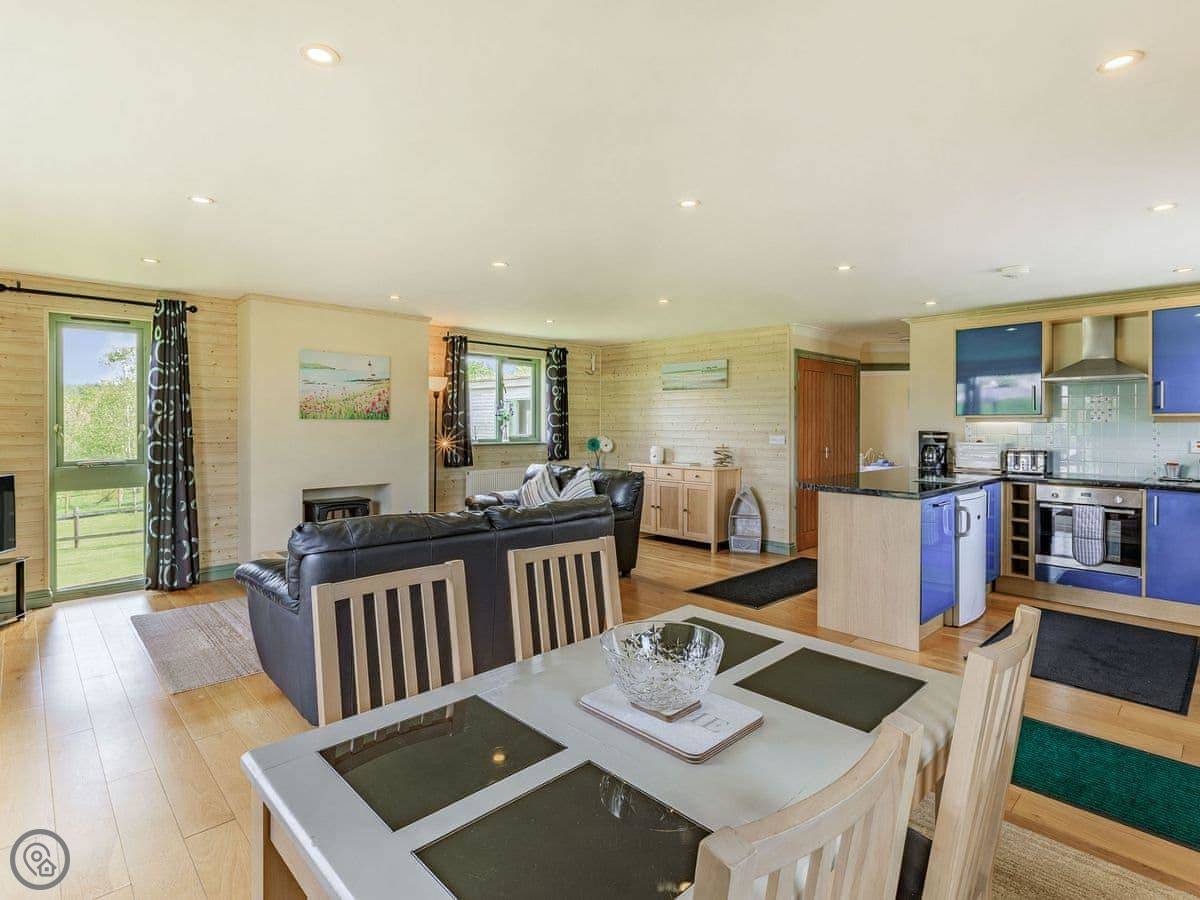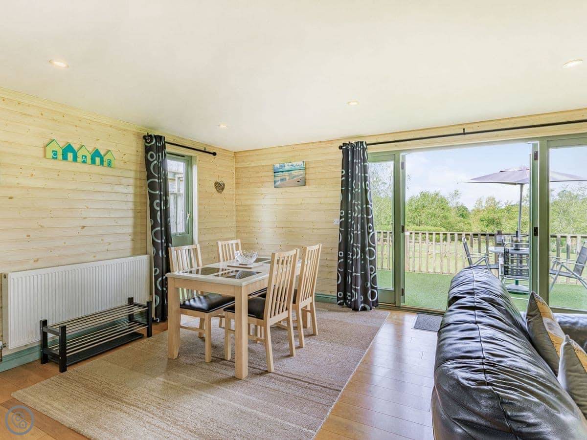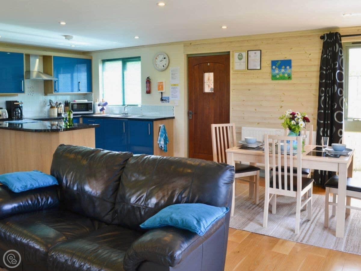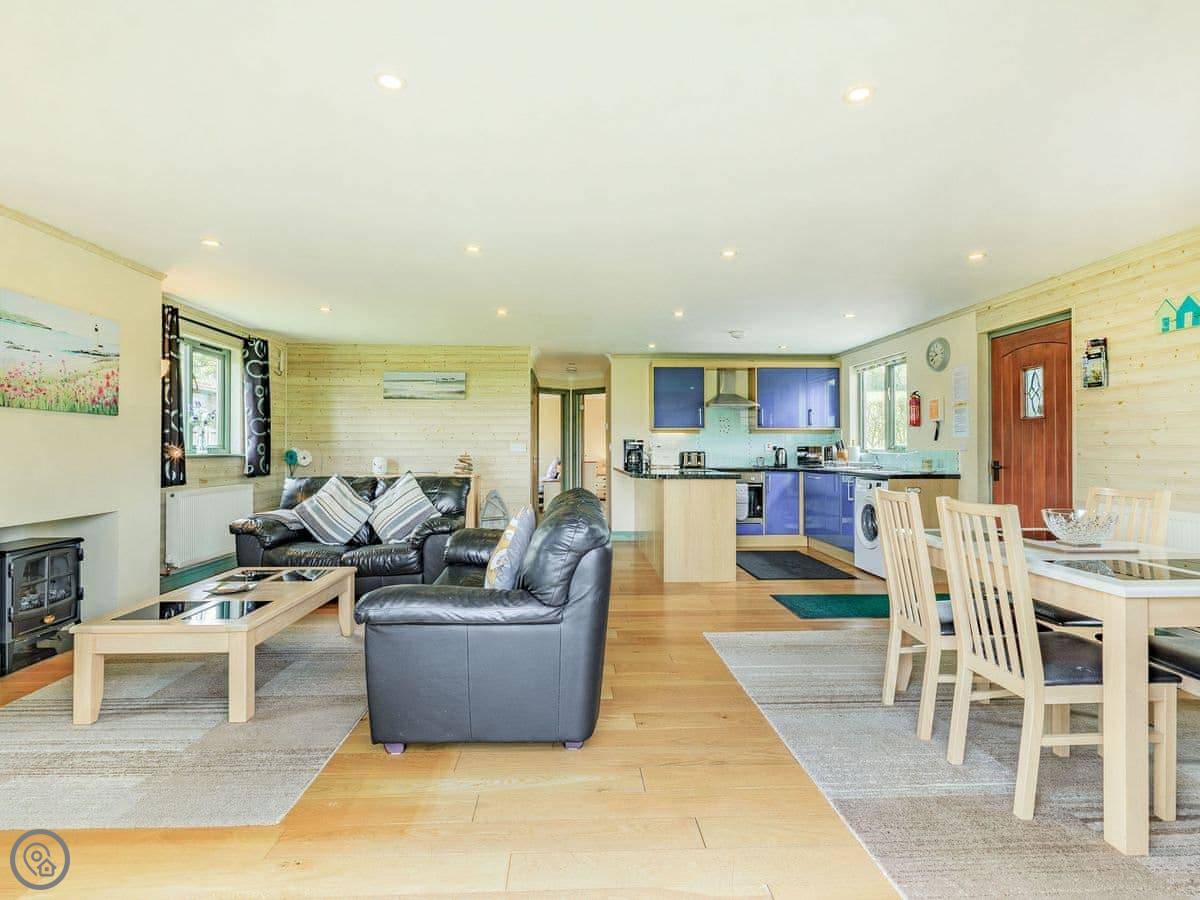 Bluebell Lodge is one of a few lodges on the site near Whimble, just outside Holsworthy. It's detached and you've got your own decking out the front. The view from the living room is over the fishing lakes and fields.