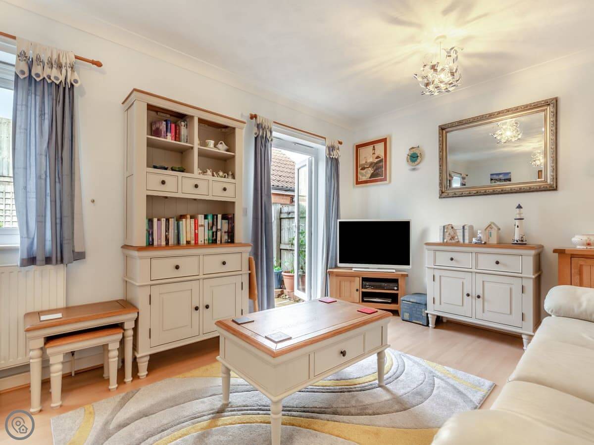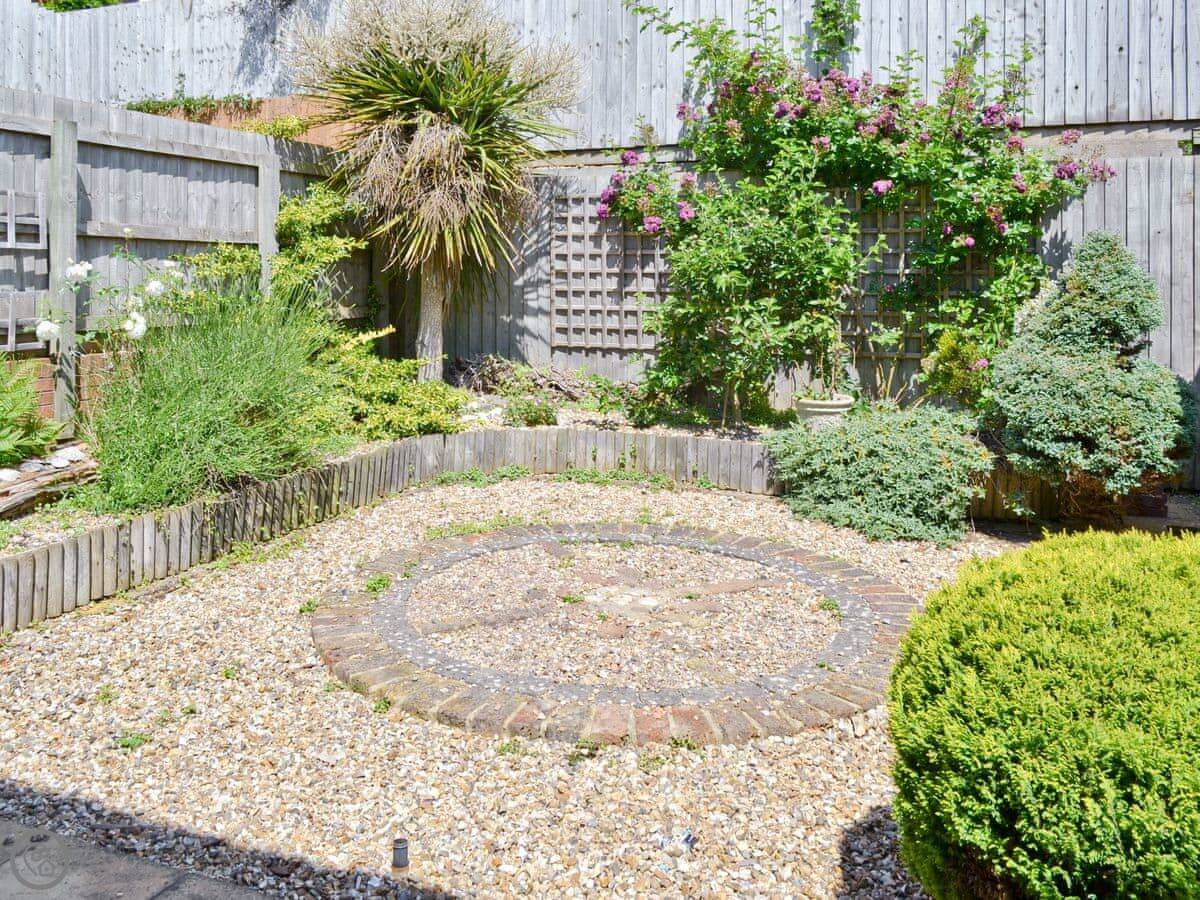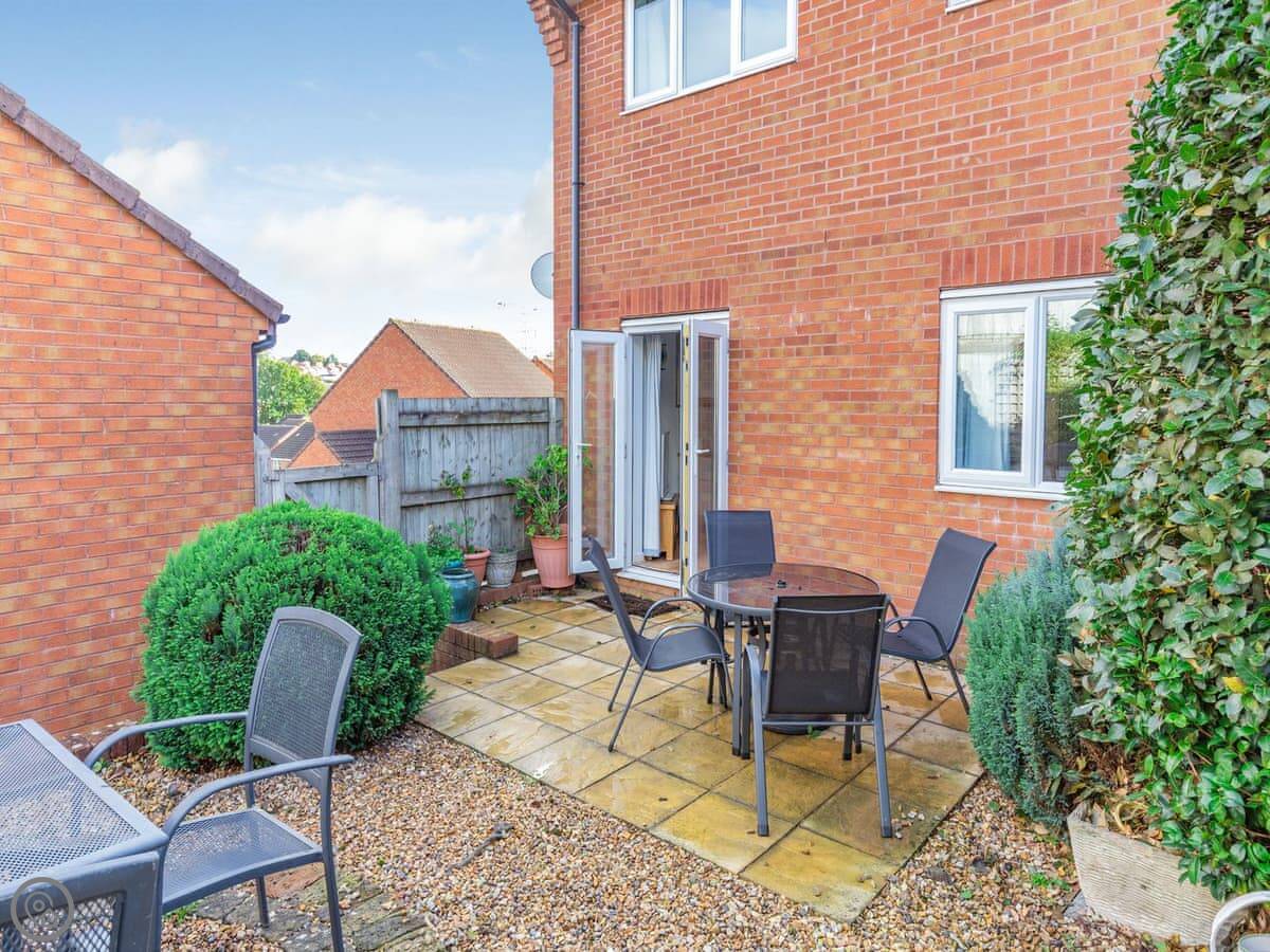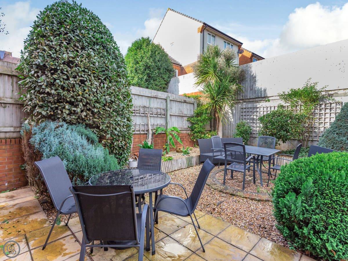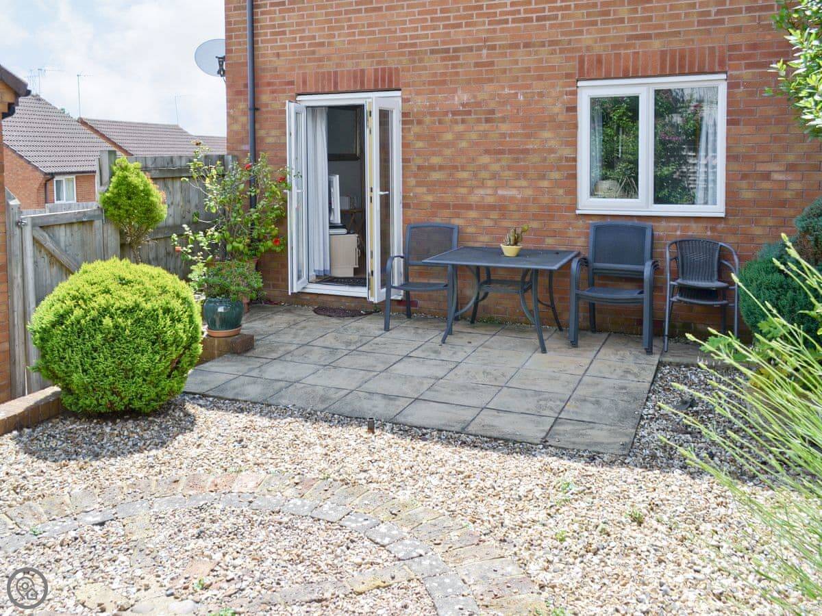 Chaucer Rise is a detached house in a quiet part of Exmouth. It's not on the seafront, it's a residential street. But it's only a ten or fifteen minute walk down to the beach. You get a little enclosed courtyard garden out the back. It's paved, good for sitting out.