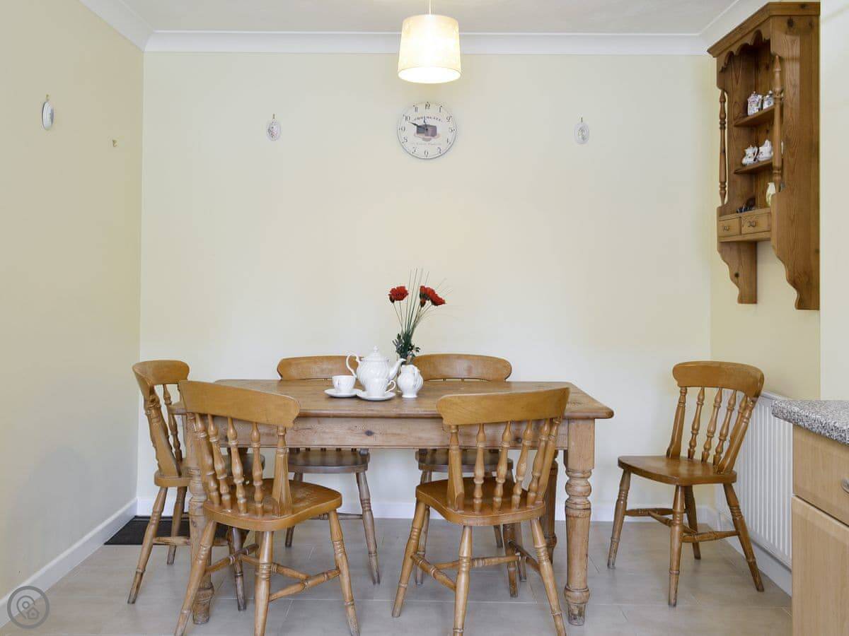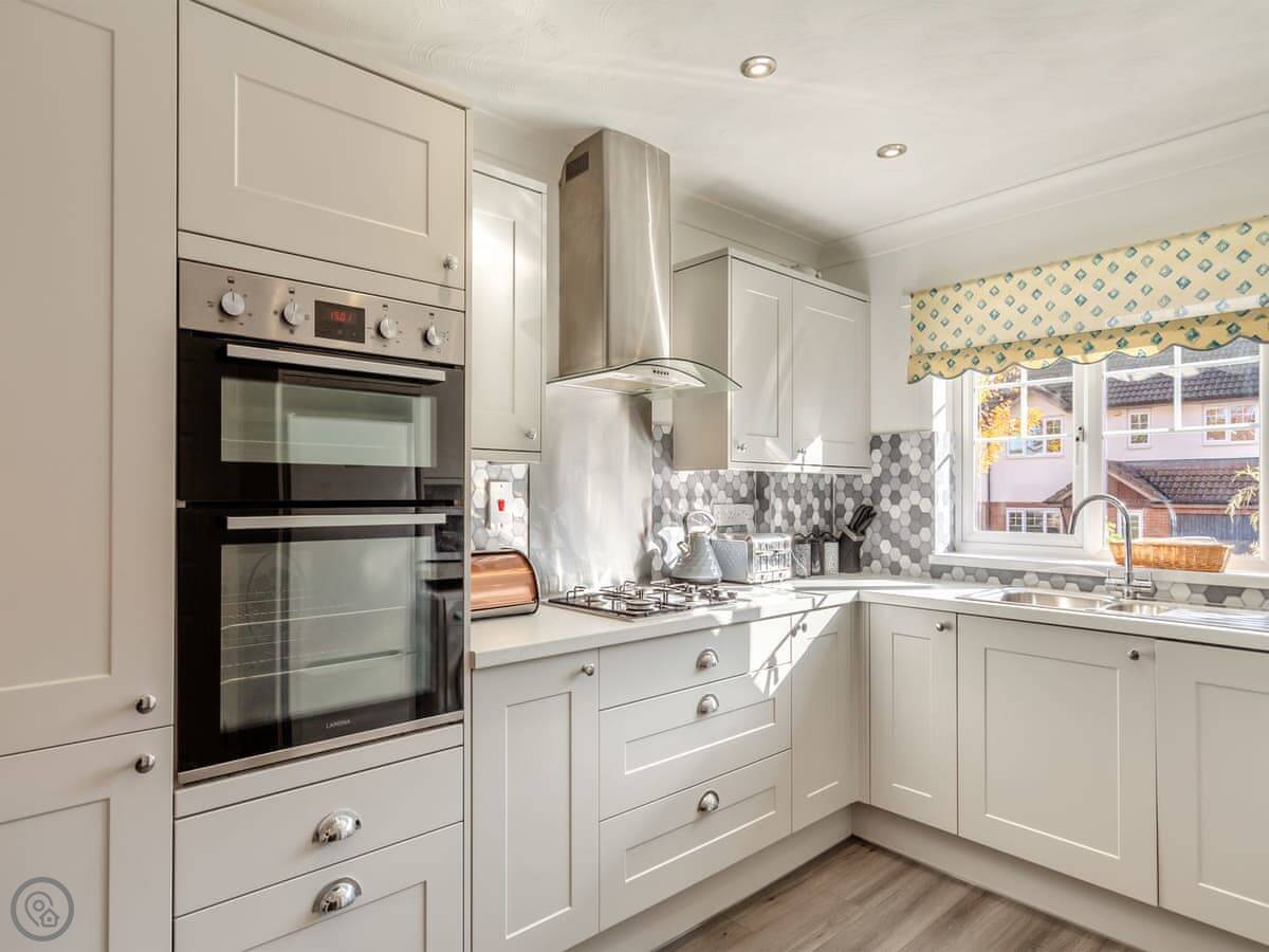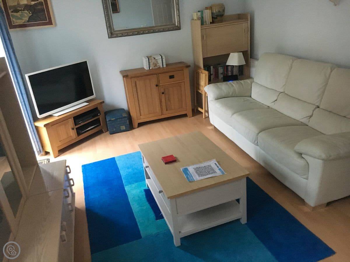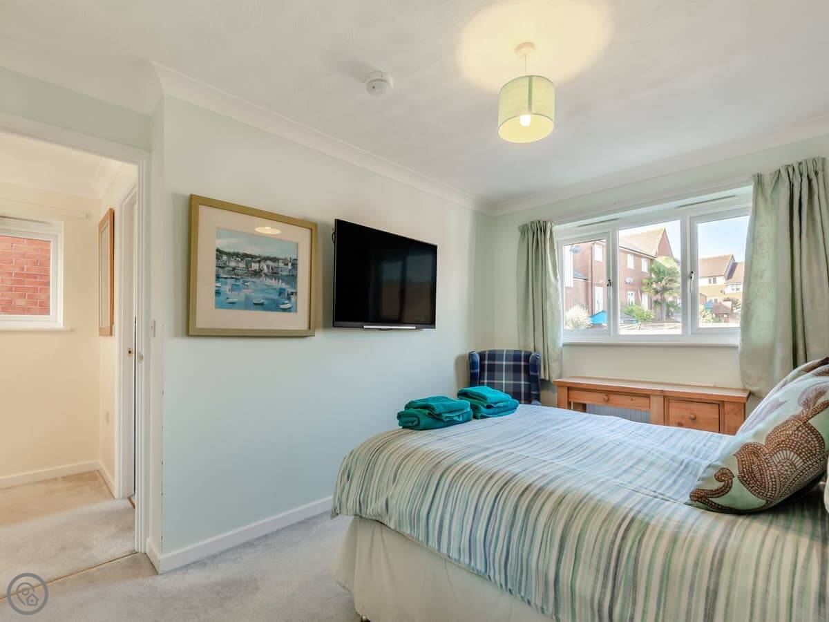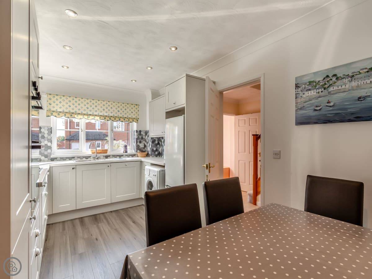 Chaucer Rise is a detached house in a quiet part of Exmouth. It's not on the seafront, it's a residential street. But it's only a ten or fifteen minute walk down to the beach. You get a little enclosed courtyard garden out the back. It's paved, good for sitting out.