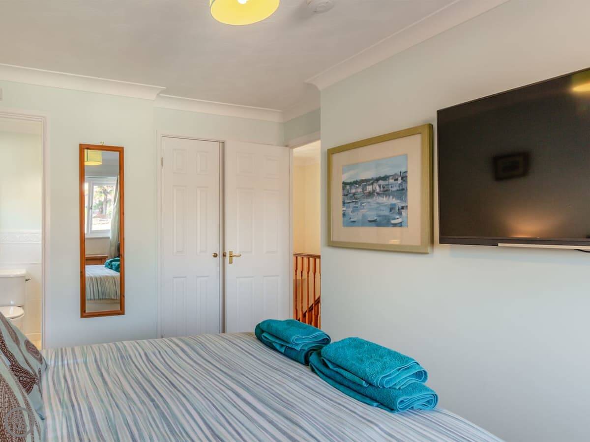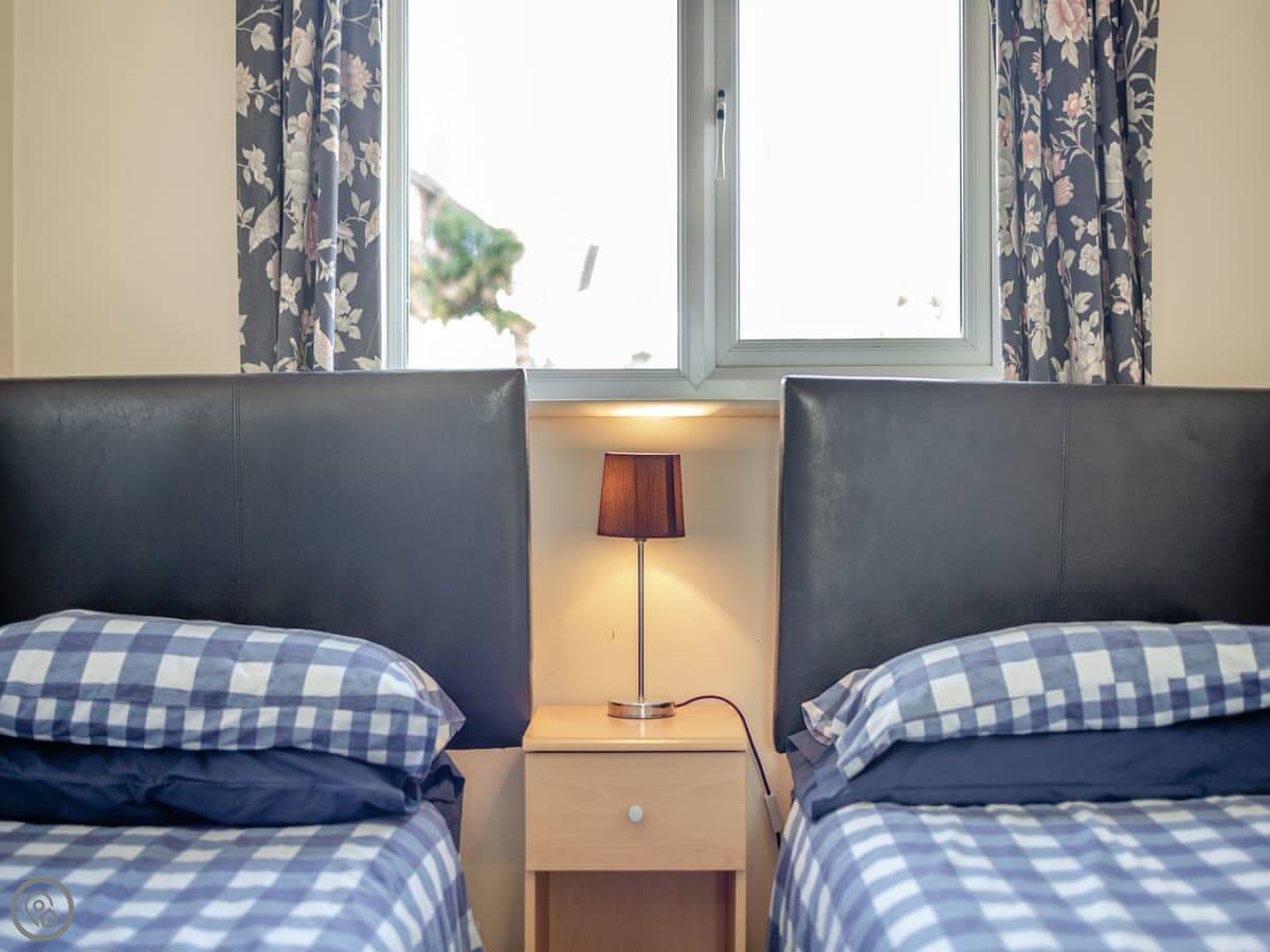 It sleeps four. There are three bedrooms, which is handy if you want a bit of space, and two bathrooms upstairs. It's got a 4 Star rating, so it's comfortable and well looked after. The parking is on the drive.