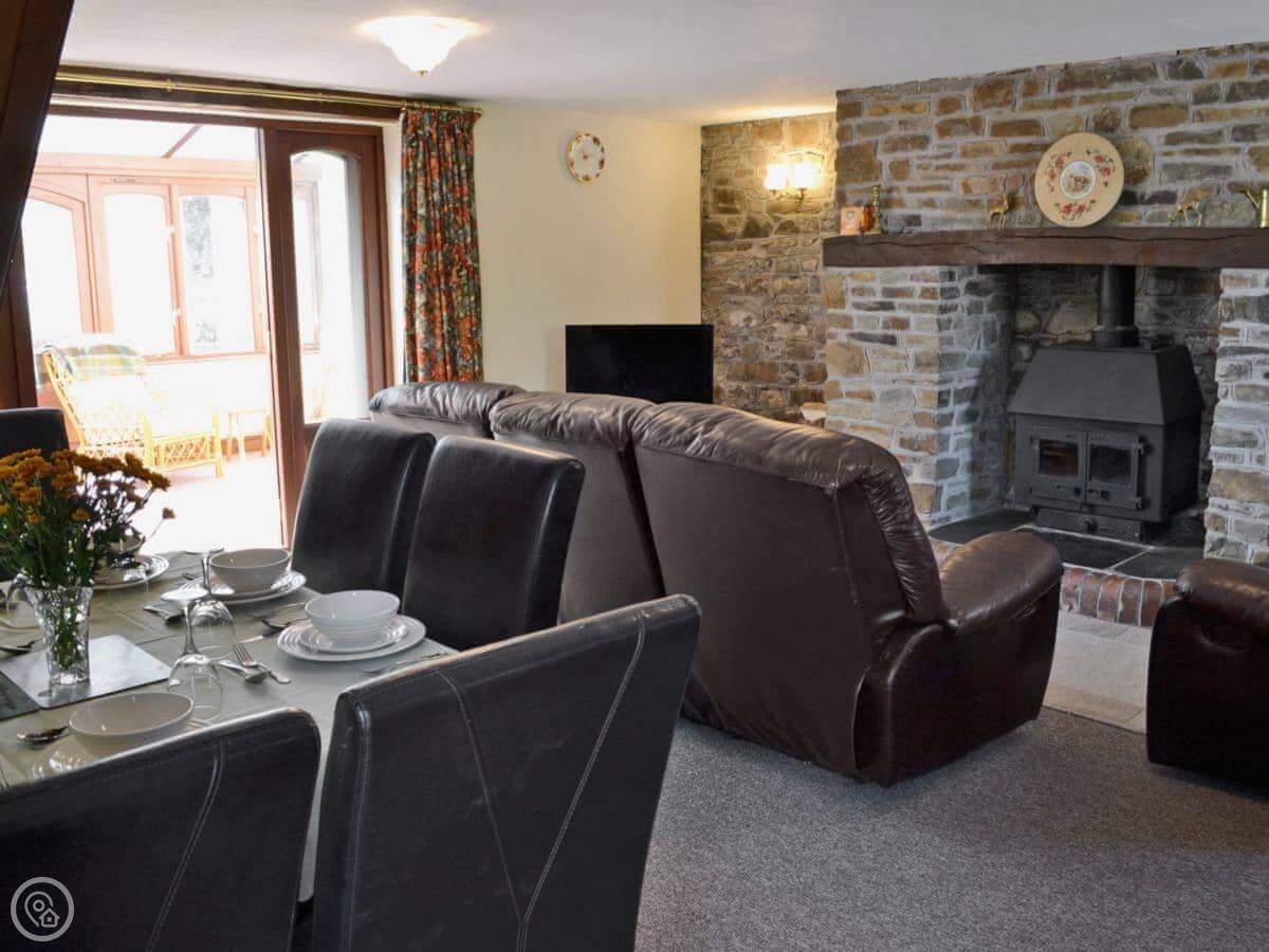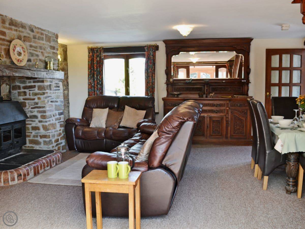 It sleeps six in three bedrooms. There are two bathrooms, one downstairs. It's got a 4 Star rating. It's comfortable, not posh. The main room downstairs has the kitchen at one end and the sitting area with the wood burner at the other. It works.