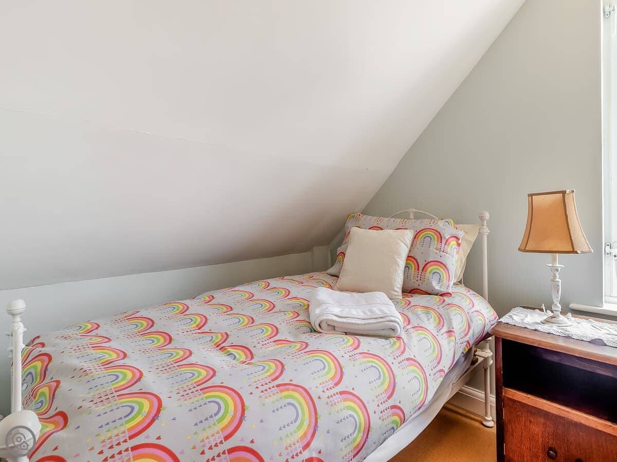 It sleeps five. Three bedrooms, two bathrooms. It's got a 4 Star rating. The stairs are in the description for a reason, they're steep and a bit narrow in places. If you've got very young kids or anyone unsteady on their feet, you'll need to keep an eye on them.