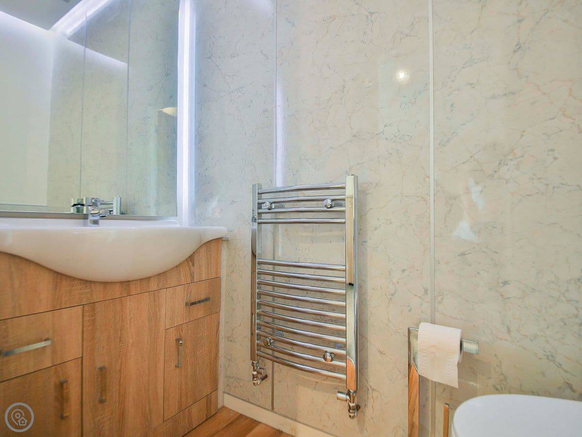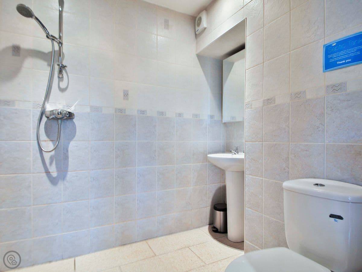 The wet room shower is on the ground floor. The stairs up to the bedroom are quite steep, just so you know.