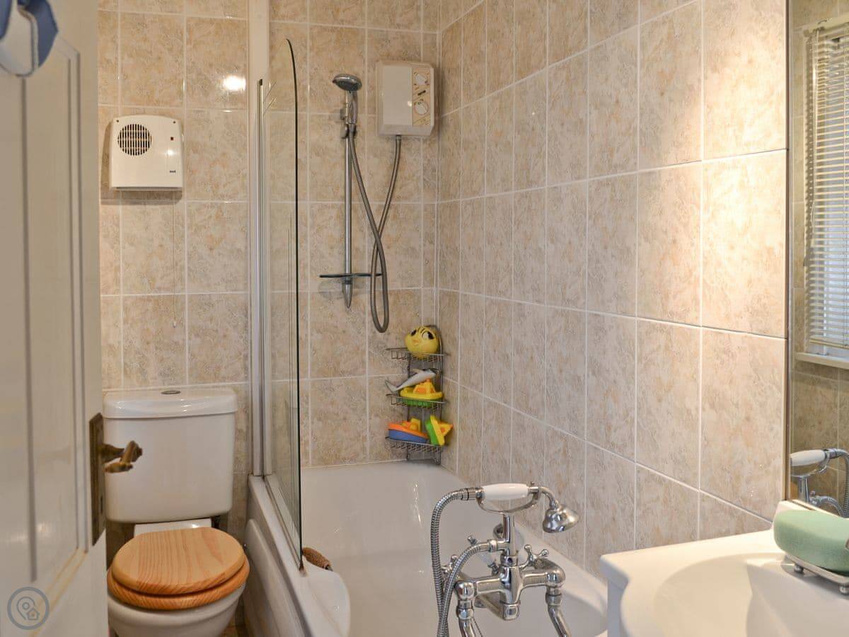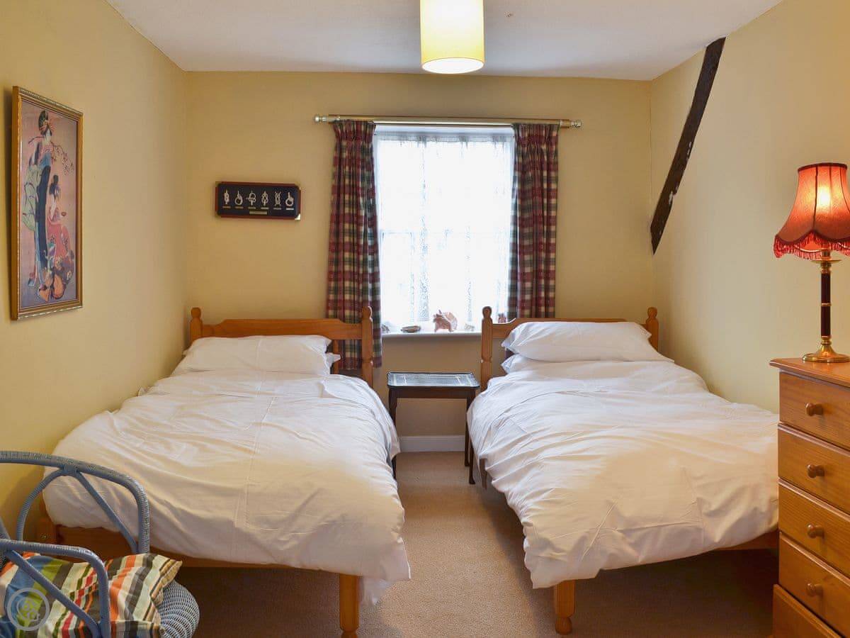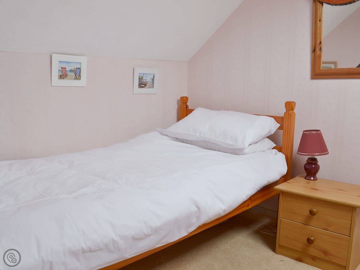 It sleeps five people in three bedrooms, with one bathroom. It's got a 3 Star rating. That's about right. It's comfortable and clean, but it's an old cottage so mind your head on the sloping ceilings in the small single room. That room has a little play area built in. The stairs are steep and they're the original ones.