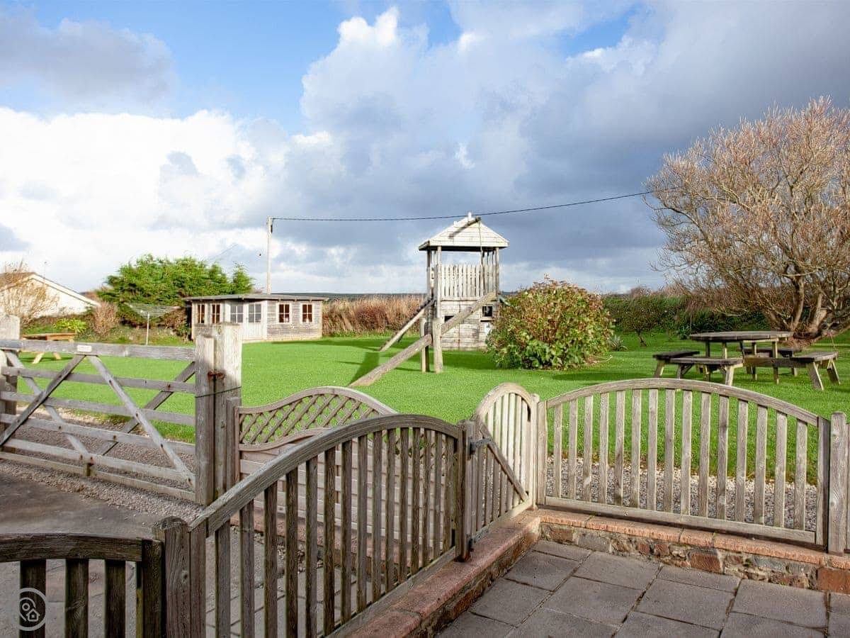 Situated within the grounds of the owner’s home, a shared ½-acre play area at the front of the cottages provides an ideal space for little ones to frolic. The enclosed lawn features swings, a slide, a Wendy’s house, and other play equipment, ensuring hours of entertainment. Just a short drive away lies the picturesque Clovelly, with its cobbled streets leading to a tiny harbour. Historic Bideford, once a prosperous port during the heyday of trade with America, beckons with a variety of town amenities, restaurants, a weekly market, and boat trips to Lundy Island. Eight miles from the property, Bude offers a selection of shops and seafood-focused restaurants, along with a golf course, an indoor ’Splash’ pool, surf schools, and bowling.