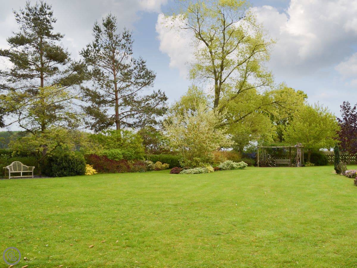 Also available for resident’s private use, at times agreed with the owner upon arrival, is a delightful 10m x 5m indoor heated swimming pool, which is generally maintained to a lovely temperature of 30°c. The sauna, with the option to add eucalyptus oils, shower and changing facilities allows residents to relax in private spa facilities. The double bedroom has a wardrobe with ample storage, a hairdryer, premier Dorma bed linen and fluffy Egyptian cotton towels and separate towels for the swimming pool. A pull-out bed with all linen and towels can be provided upon request for a child 12 years or under. The conservatory/dining room leads outside to a substantial decked terrace and patio area with shared outside seating. There are wonderful views over extensive landscaped rear gardens, a Japanese garden and the fields beyond. The conservatory also provides guests with private direct access to the indoor heated swimming pool. Shop, pub and restaurant ½ mile.
