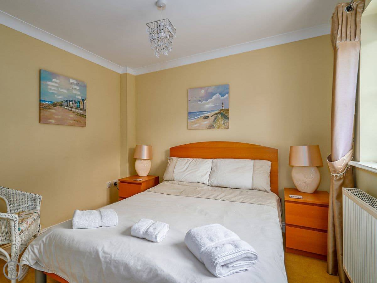 In terms of facilities, it has a dishwasher, washing machine, TV, and Wi-Fi. Bedding and towels are included. There's on-site parking. No pets, sorry.