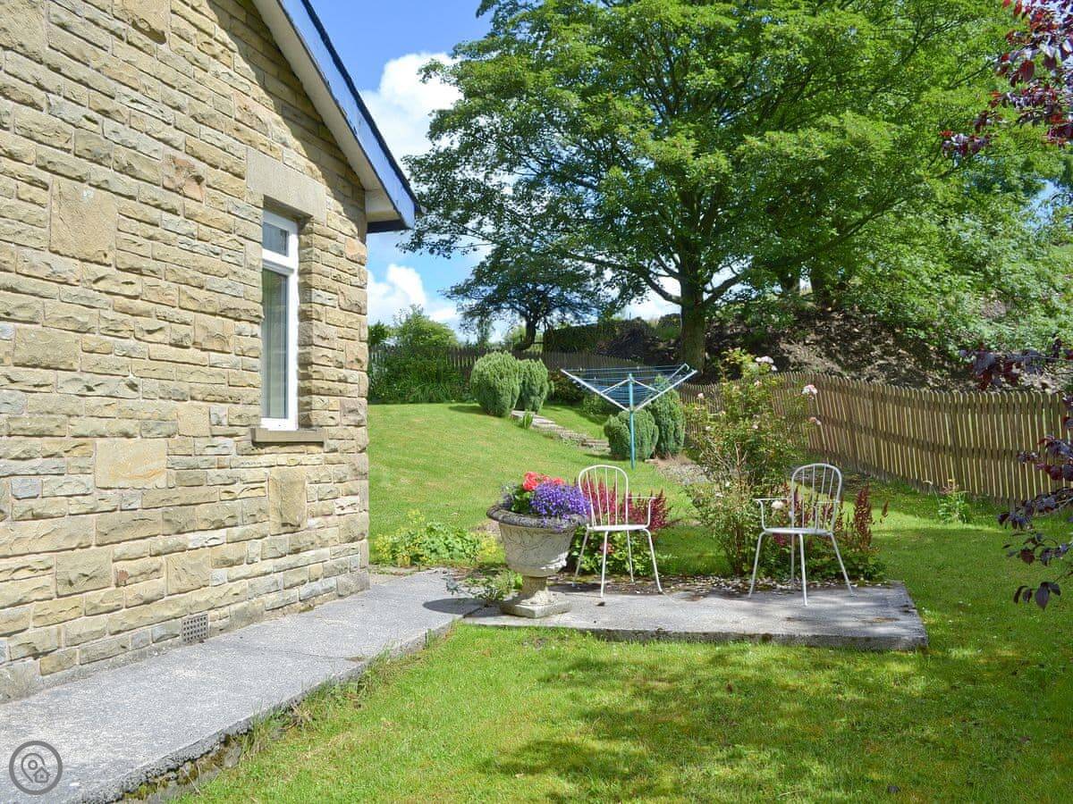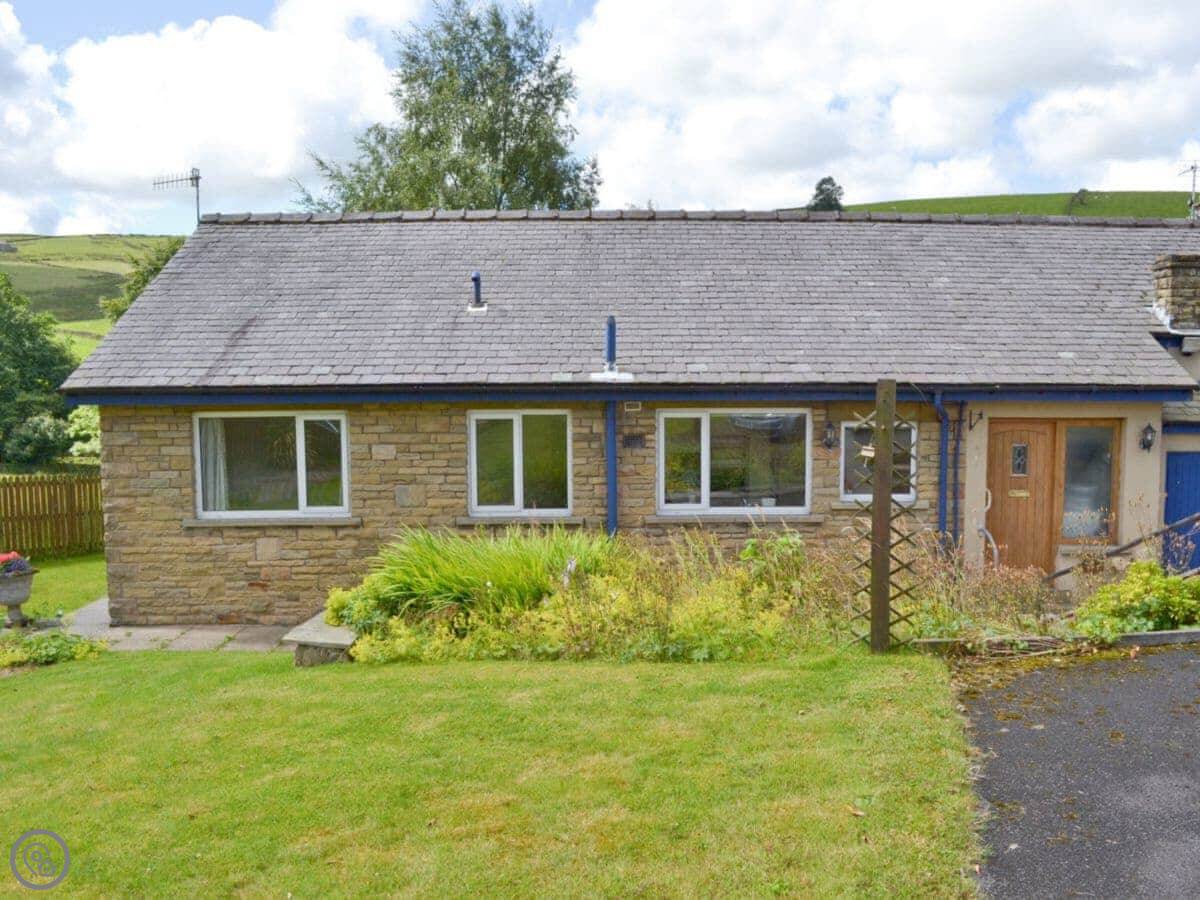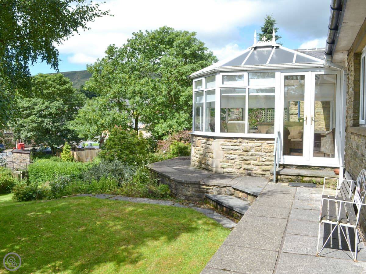Fairfield is a bungalow in Barley, up near Pendle Hill. It's got an enclosed garden that slopes down to a stream at the back. There's a big conservatory overlooking it.