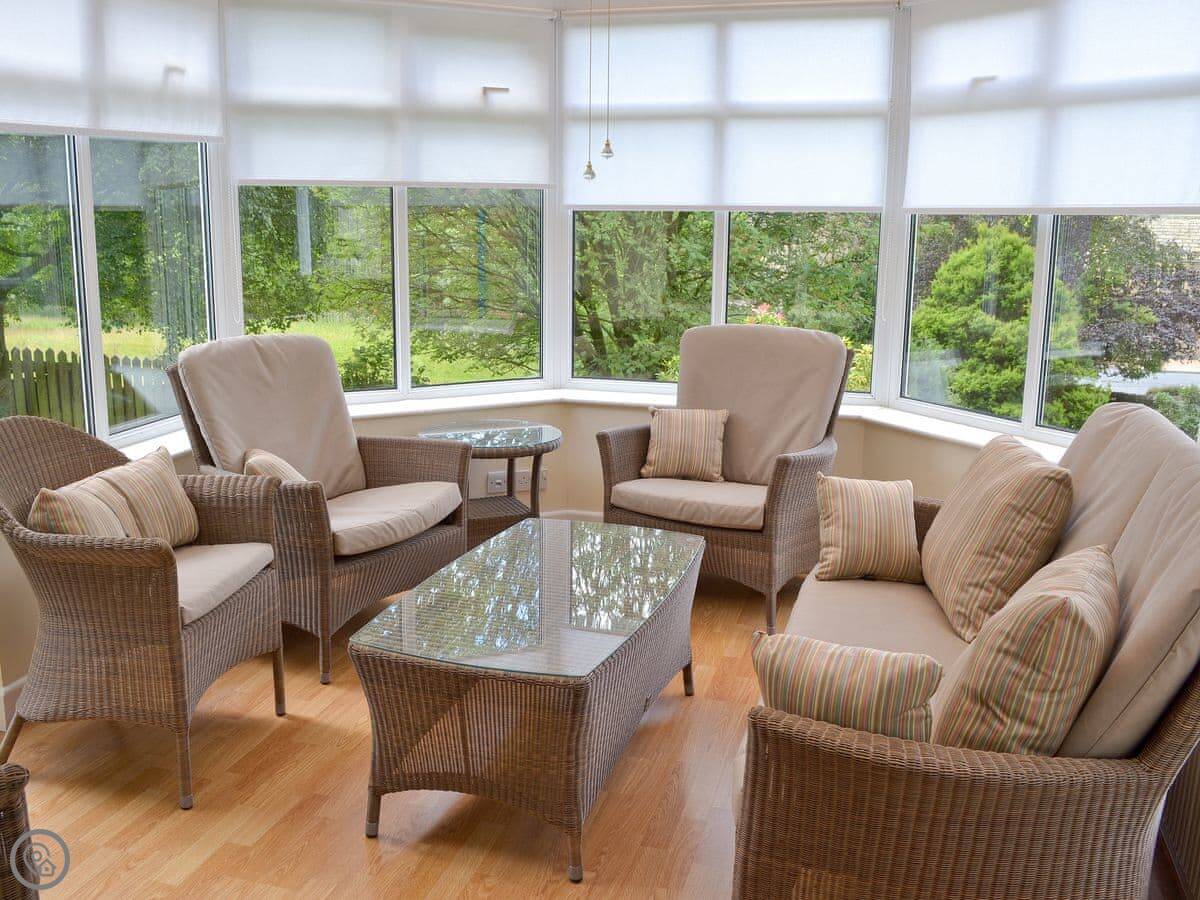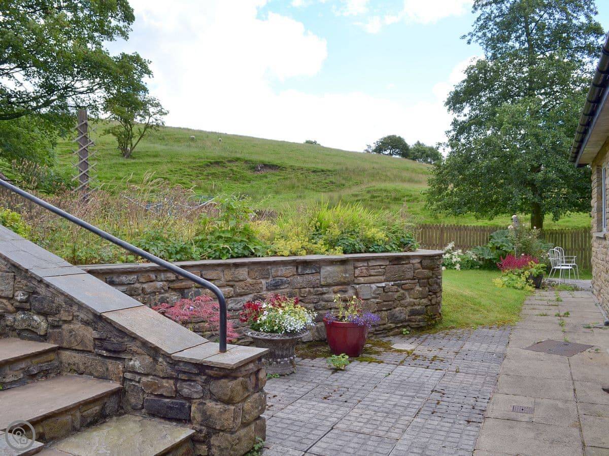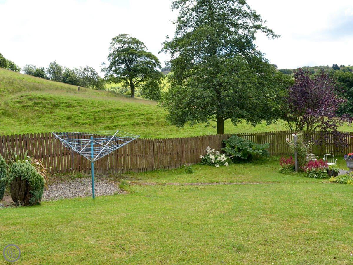 Fairfield is a bungalow in Barley, up near Pendle Hill. It's got an enclosed garden that slopes down to a stream at the back. There's a big conservatory overlooking it.