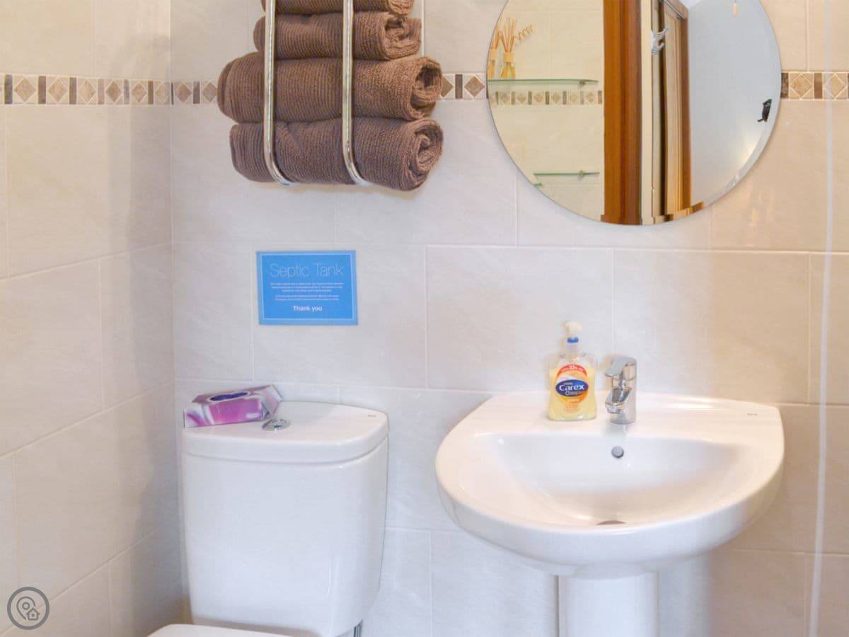 The cottages are eco-friendly. We have solar panels and an air source heat pump, so the heating and hot water are from that.