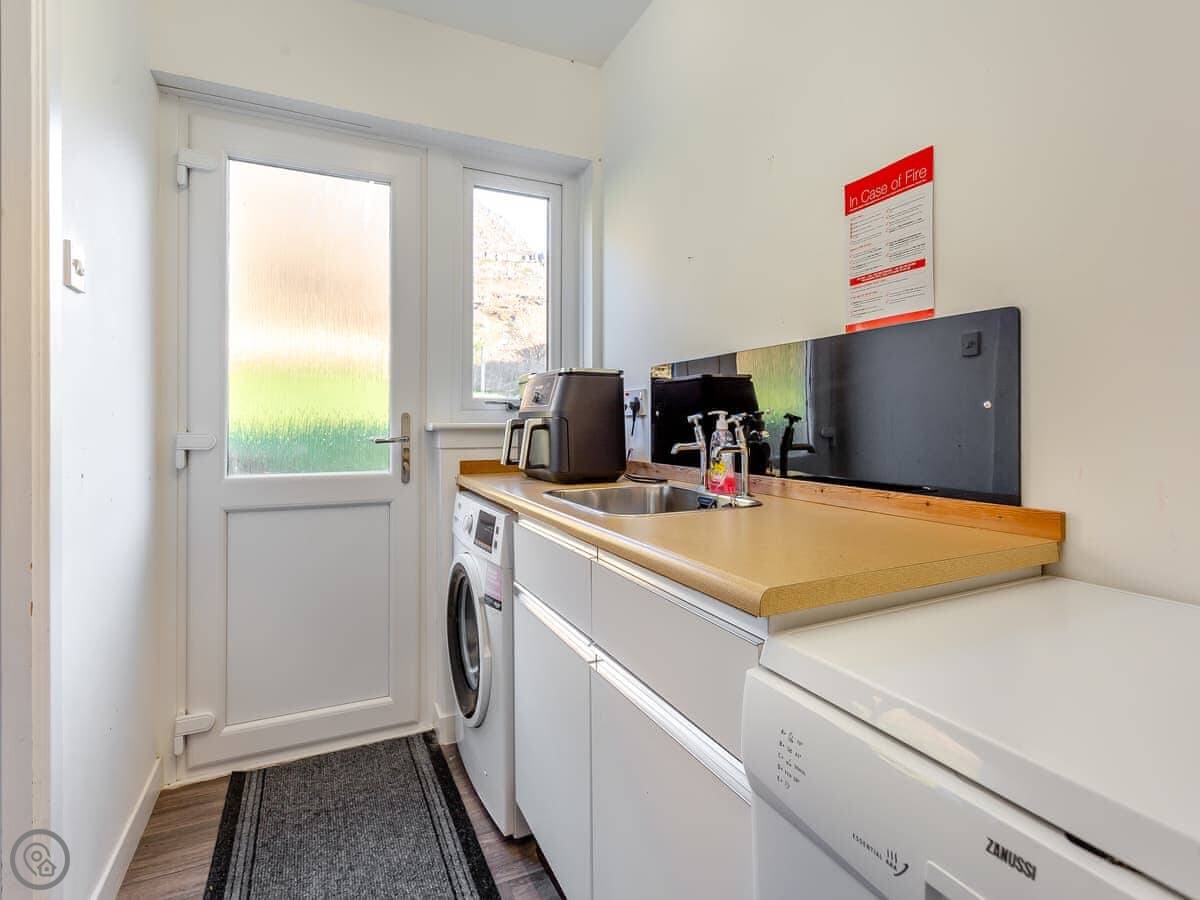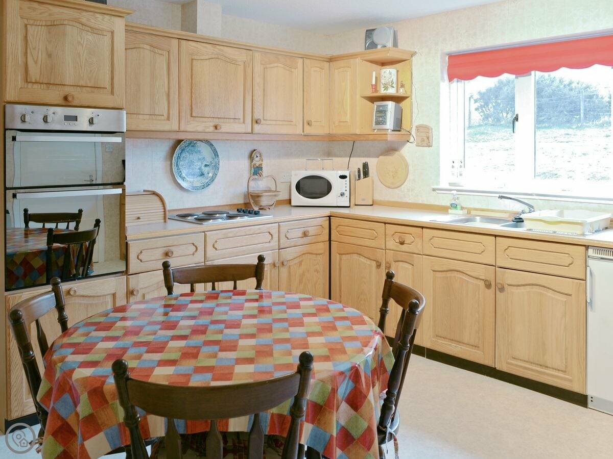 There's an open fire in the living room. We leave wood for you. The kitchen is a farmhouse style with a decent table to eat at. It has a dishwasher and a washing machine.