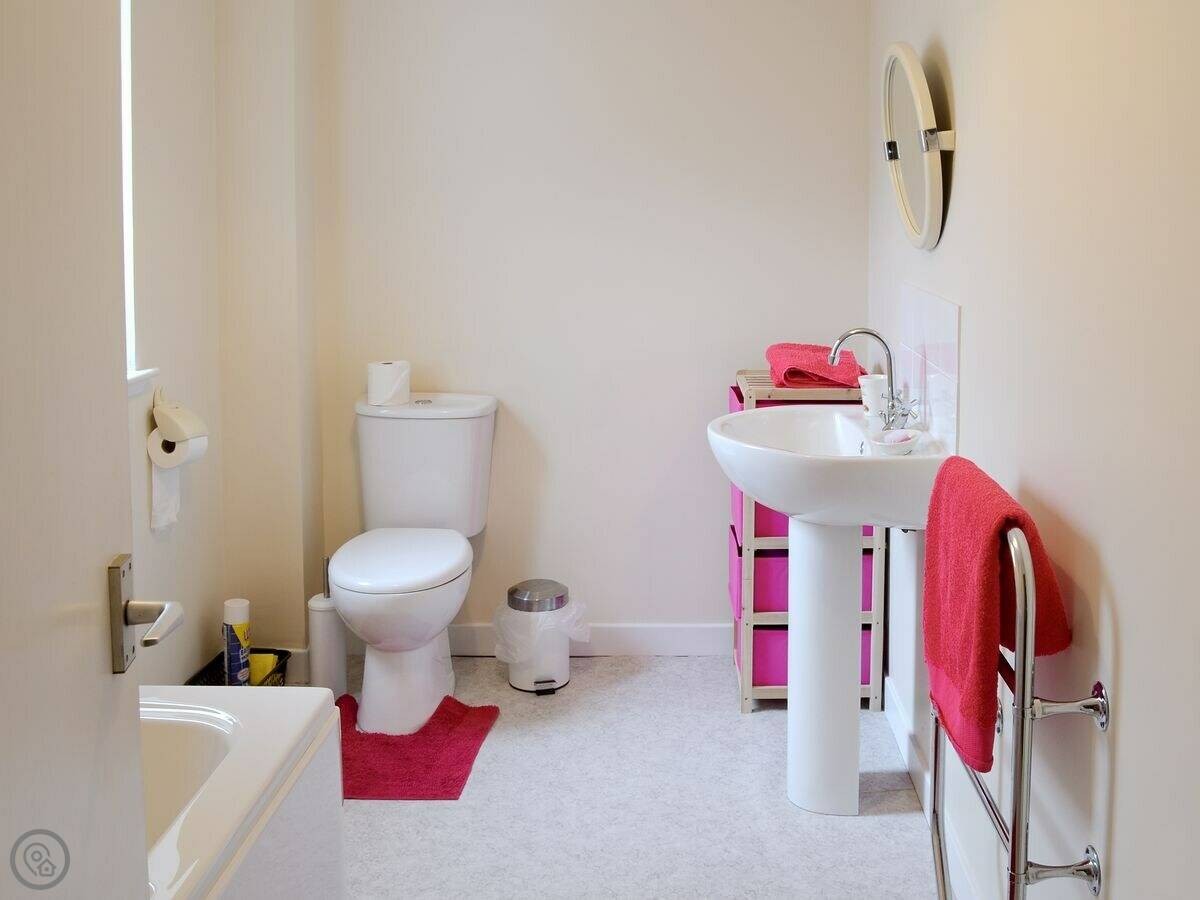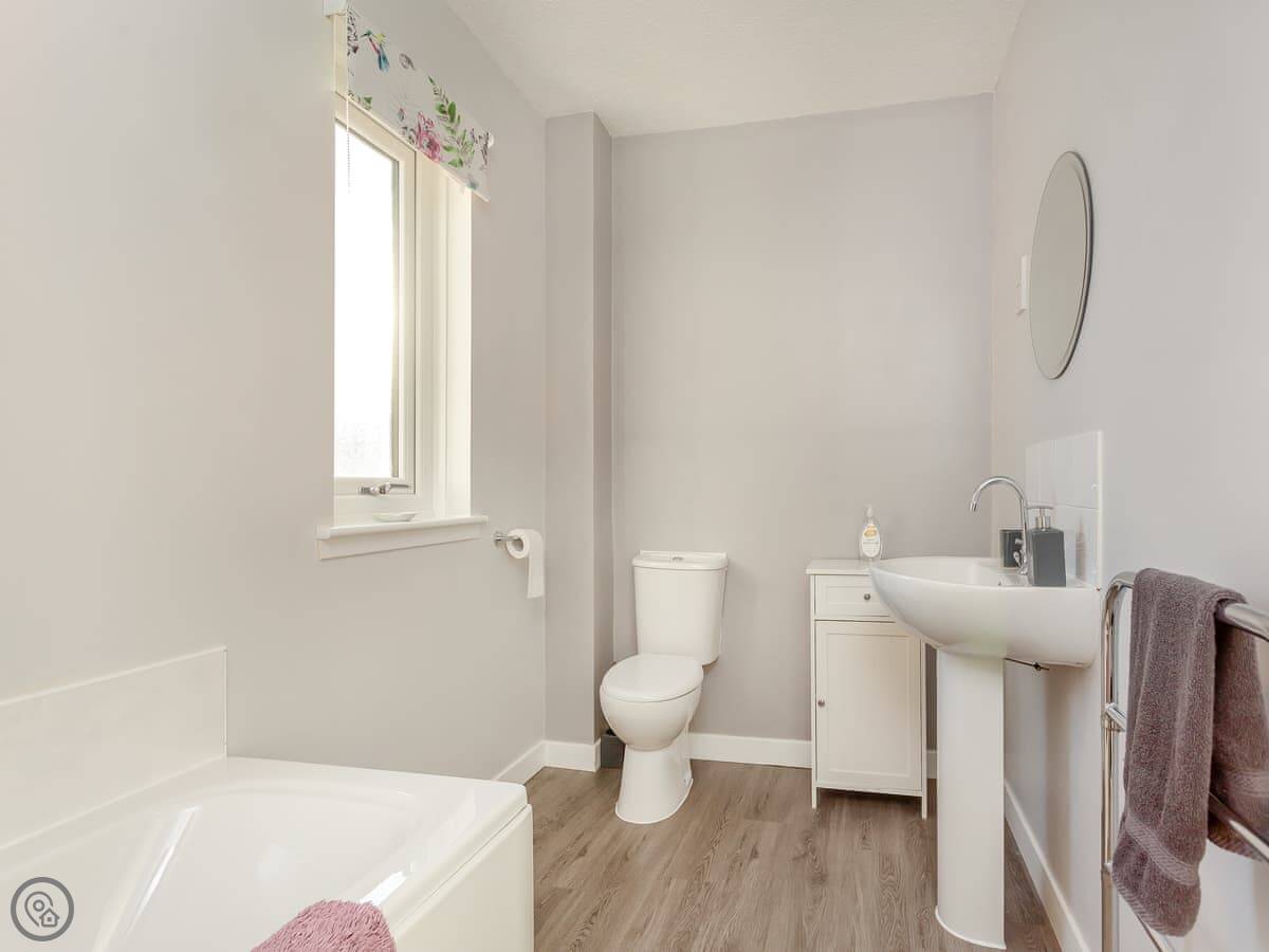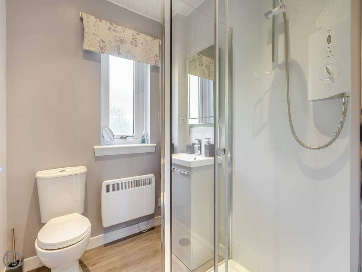 It sleeps four. Two bedrooms, two bathrooms. One bathroom is en-suite to a bedroom. It's a 3 Star, so it's comfortable and clean. The rooms are all a good size.