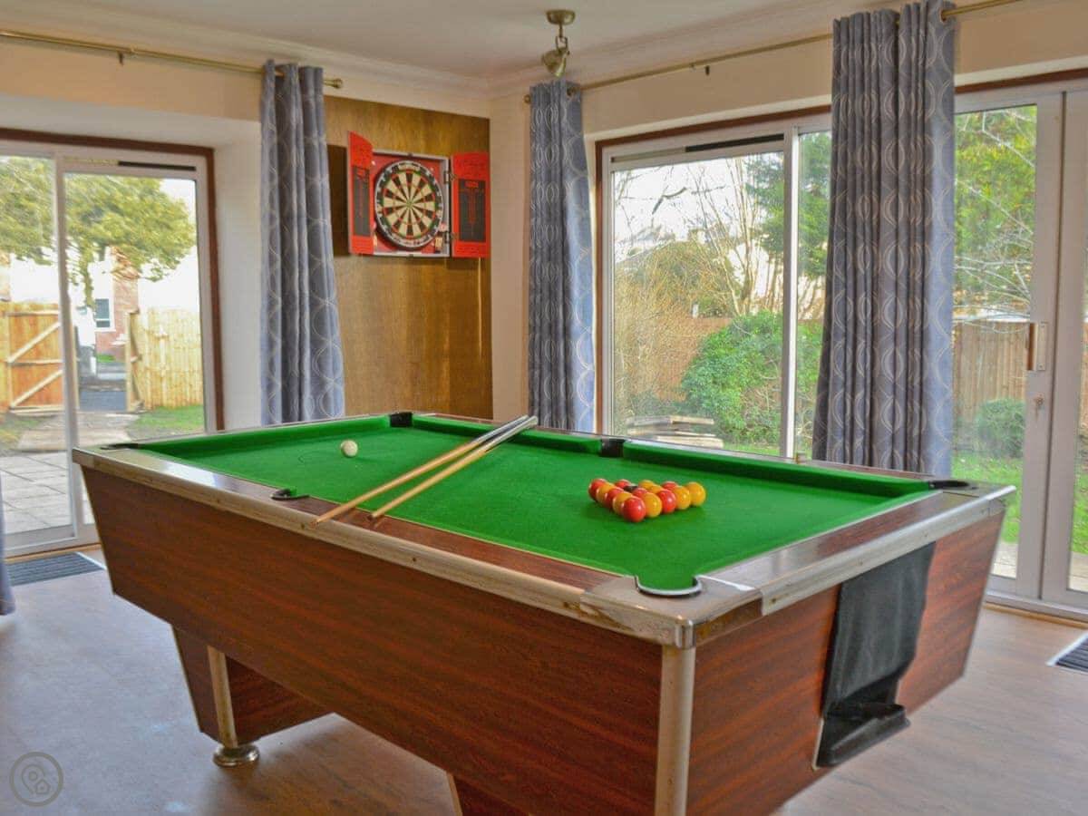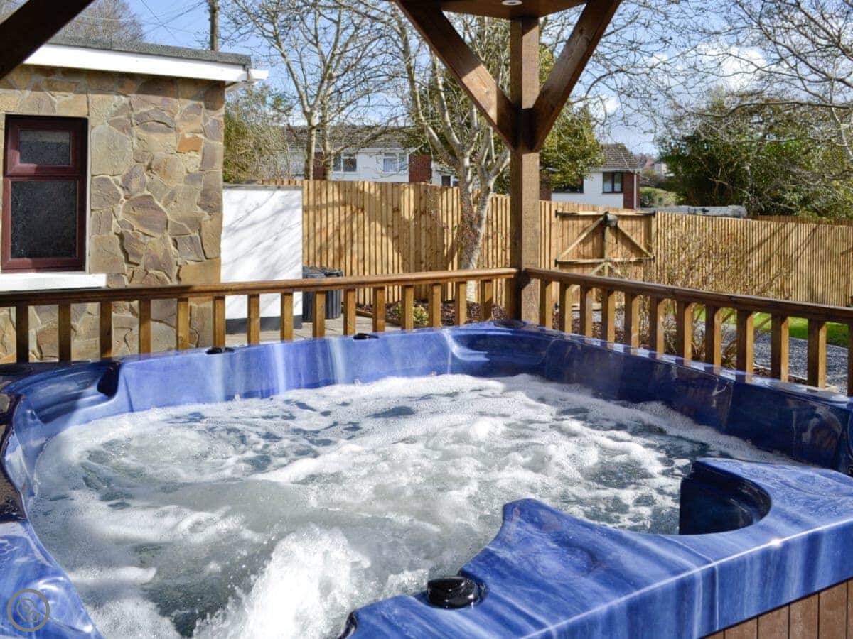 The garden is enclosed. There's a patio with a BBQ and a hot tub that seats seven. Inside, there's a woodburning stove for cooler evenings, and a games room for wet days. We include bedding and towels. There's parking right there.