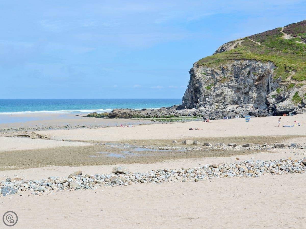 The beach at Porthtowan is about a mile away. It’s a surf beach with sand dunes. There's a beach bar, a surf school, and a pub in the village. For a quieter cove, Chapel Porth is even closer. It has a good café. The South West Coast Path runs along the cliffs above.