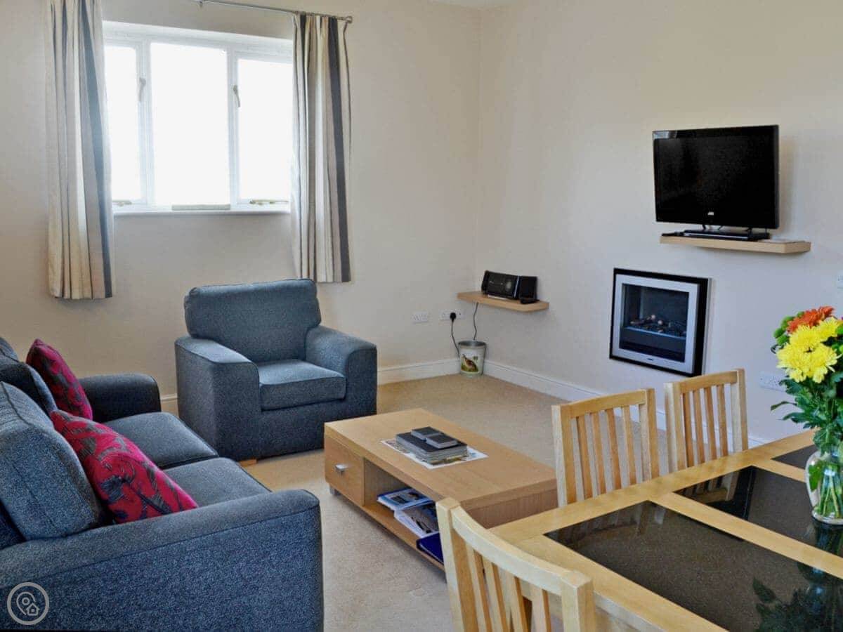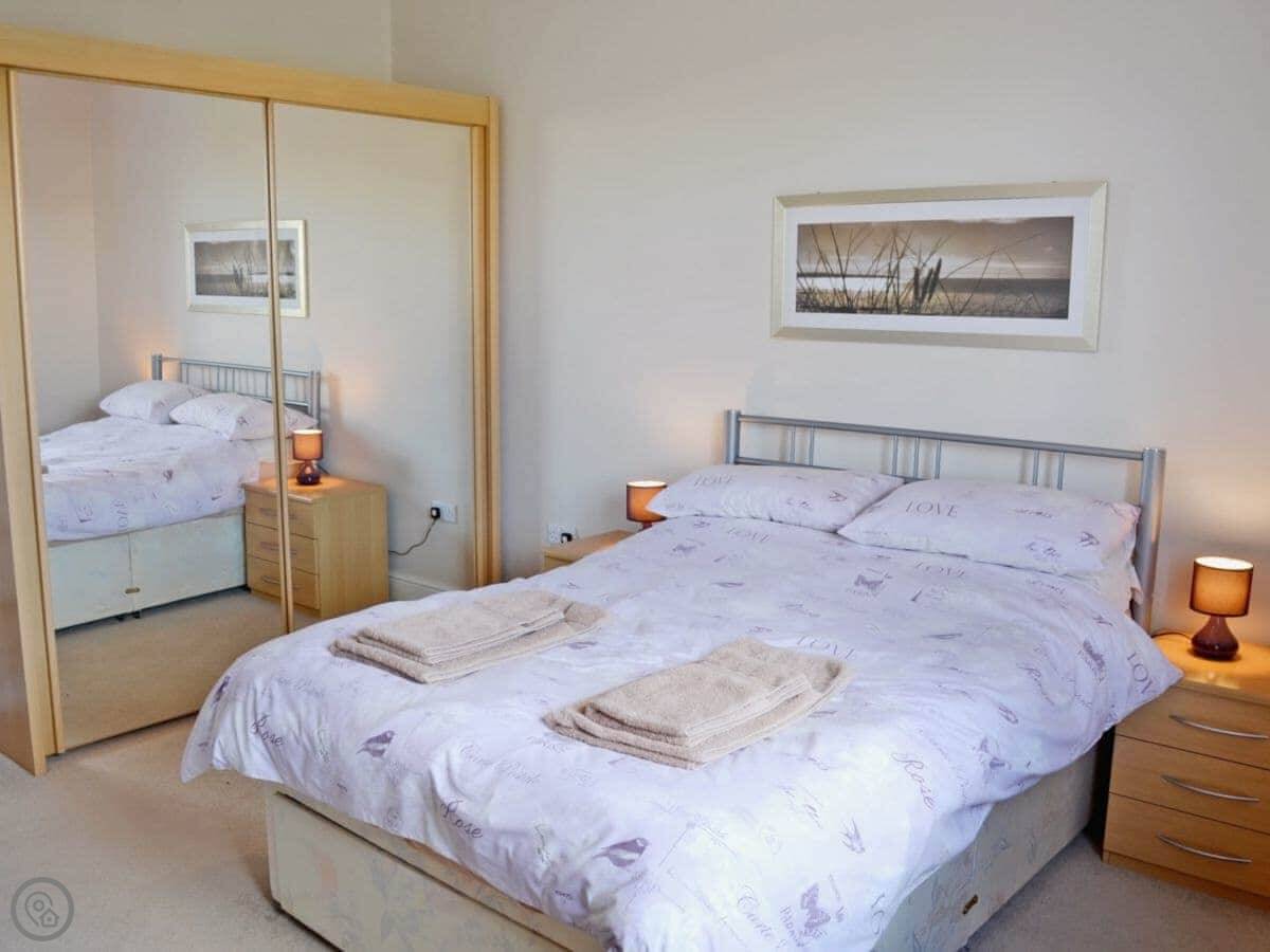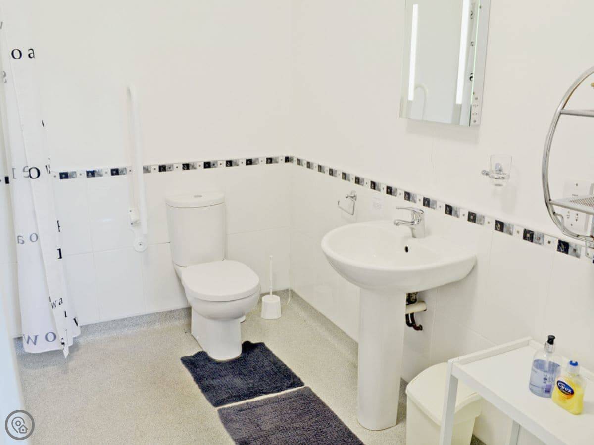 It sleeps four. Two bedrooms and one bathroom, which is a wet room. It's got a 4 Star rating. It's clean, modern, and worked well for us. The doors are wide and there are grab rails in the wet room.