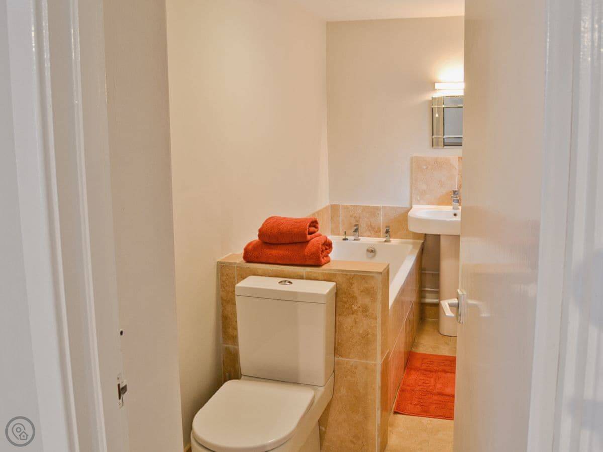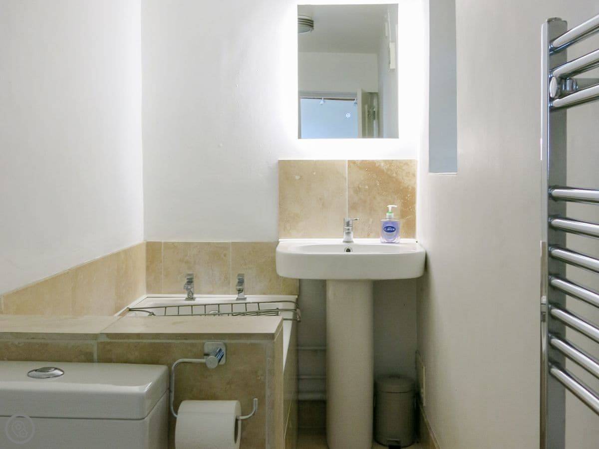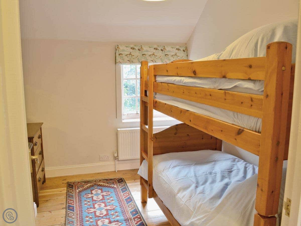 It sleeps five, in three bedrooms. There are two bathrooms, which is handy. It's got a 4 Star rating. It's clean and comfortable. The beams are low in a couple of doorways, you'll need to mind your head.