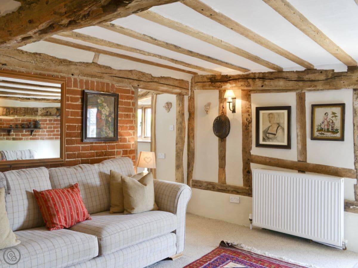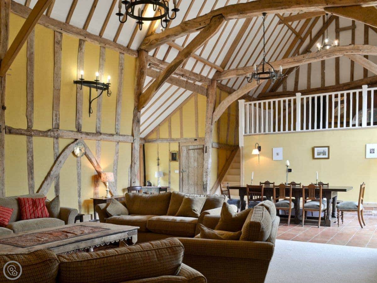 It's called Rose Farm Barn and it's on a quiet lane near Swan Green, just outside Laxfield. It's a big old converted barn, Grade II listed. Detached. You get the place to yourselves with about four acres of grounds around it, including a small orchard. The garden's enclosed.