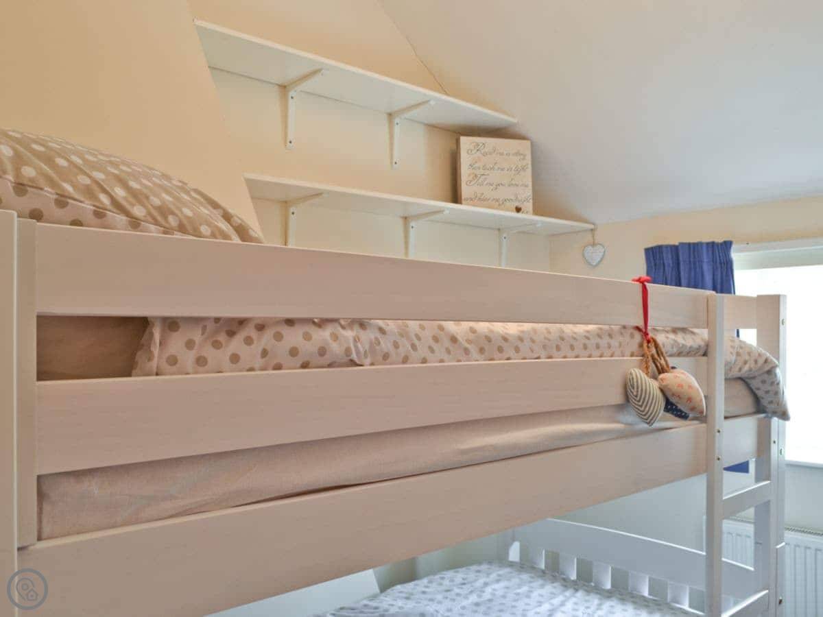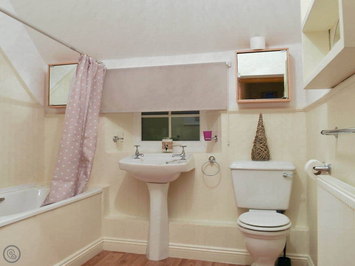 It's a 4 Star cottage, which means it's comfortable and well looked after. It sleeps four. There are two bedrooms upstairs. One double and one twin. The bathroom is downstairs, next to the kitchen.