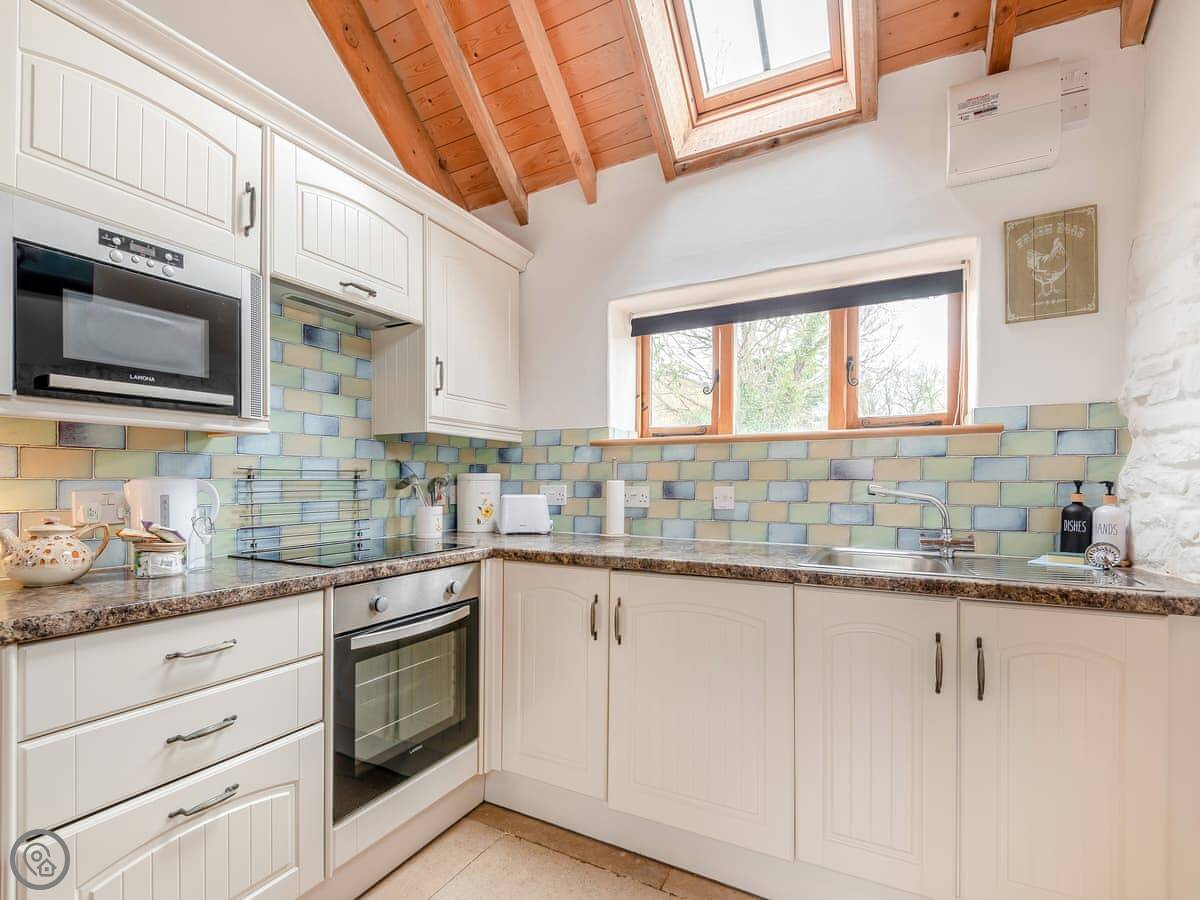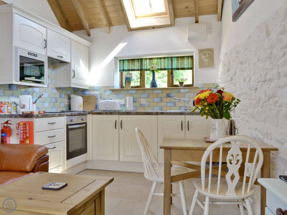 It's for two people. One bedroom, one bathroom. It's got a 4 Star rating. It's comfortable and clean, with a wood burner. The whole place is on the ground floor, so no stairs.