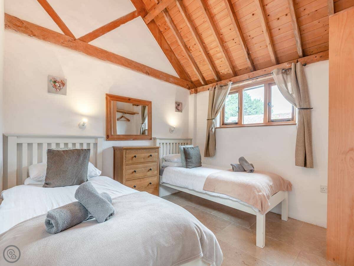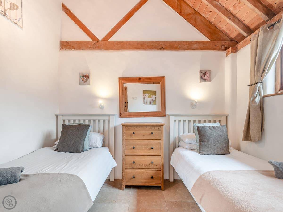 It sleeps four. Two bedrooms and one bathroom. It's a 4 Star place, so it's comfortable. We've kept some of the original beams.