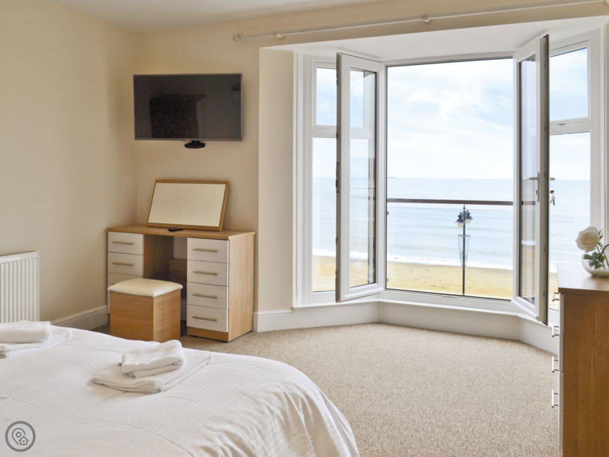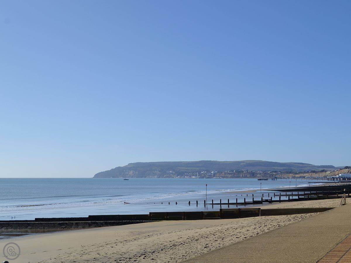 The main thing is the view. You look straight out over Sandown Bay. Big window, sea right there. The beach is sandy and it's about ten yards from the front door.