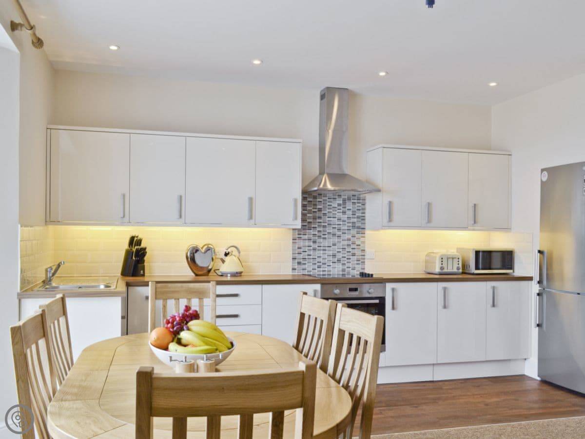 Everything you need is close. There's a shop about fifty yards away, and a pub and a restaurant just outside. The place has WiFi, a TV, a dishwasher and a washing machine. Bedding and towels are included. There's a cot and a highchair if you need them. No pets, sorry.