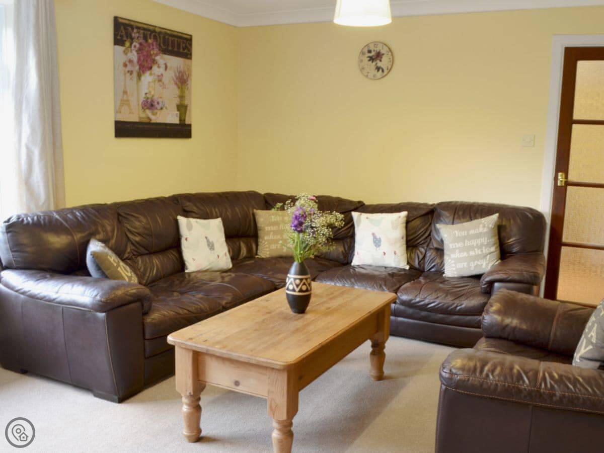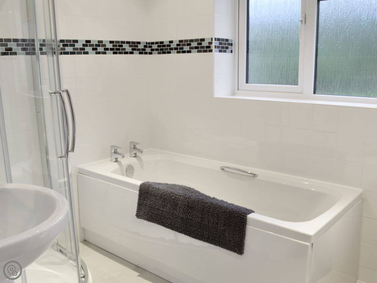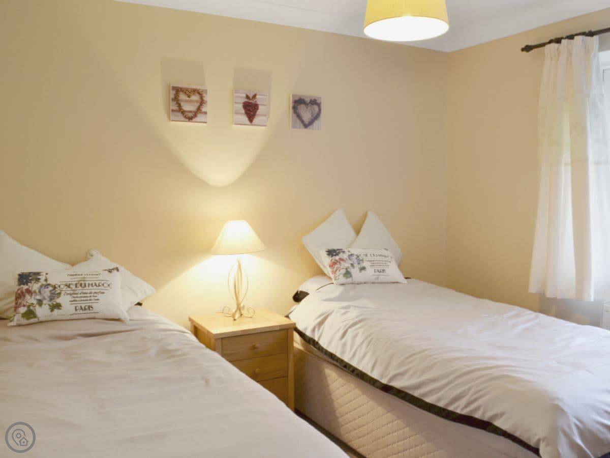 It sleeps six. Three bedrooms, two bathrooms. The 4 Star rating means it's comfortable and well-equipped. There's a large enclosed garden, which is good if you've got dogs or kids. You can let them out without worrying.