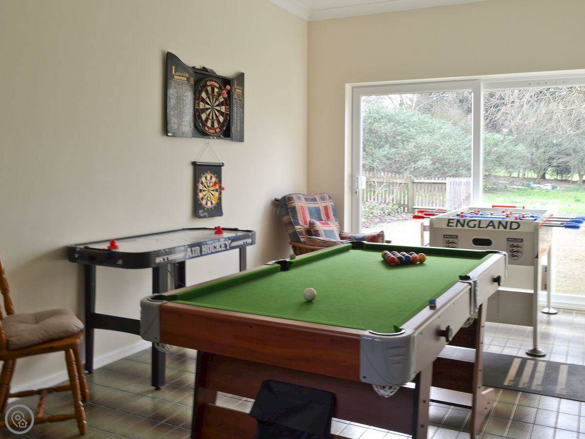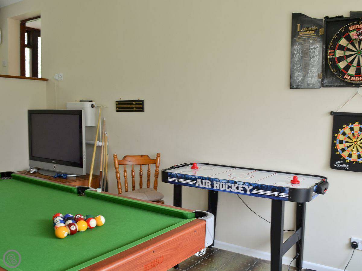 Inside, there's a proper games room with a pool table. It's a decent space if the weather turns. The main living area has a woodburning stove. We leave some wood for you to get started.