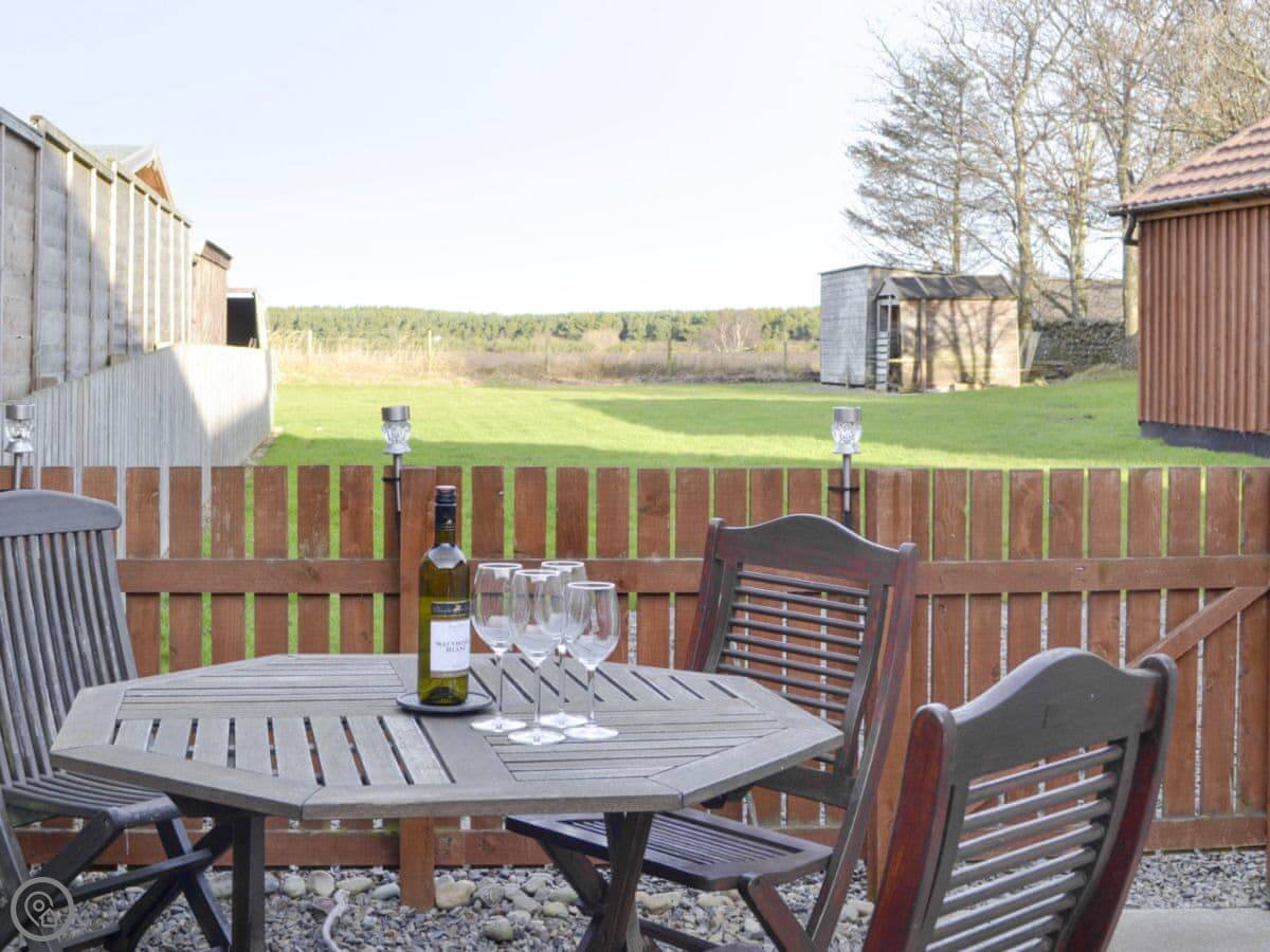 Shedend is in Nether Dallachy, a hamlet north of Elgin. The cottage is semi-detached. It's all on one level, which is good if you don't want stairs. There's wheelchair access through the French doors.