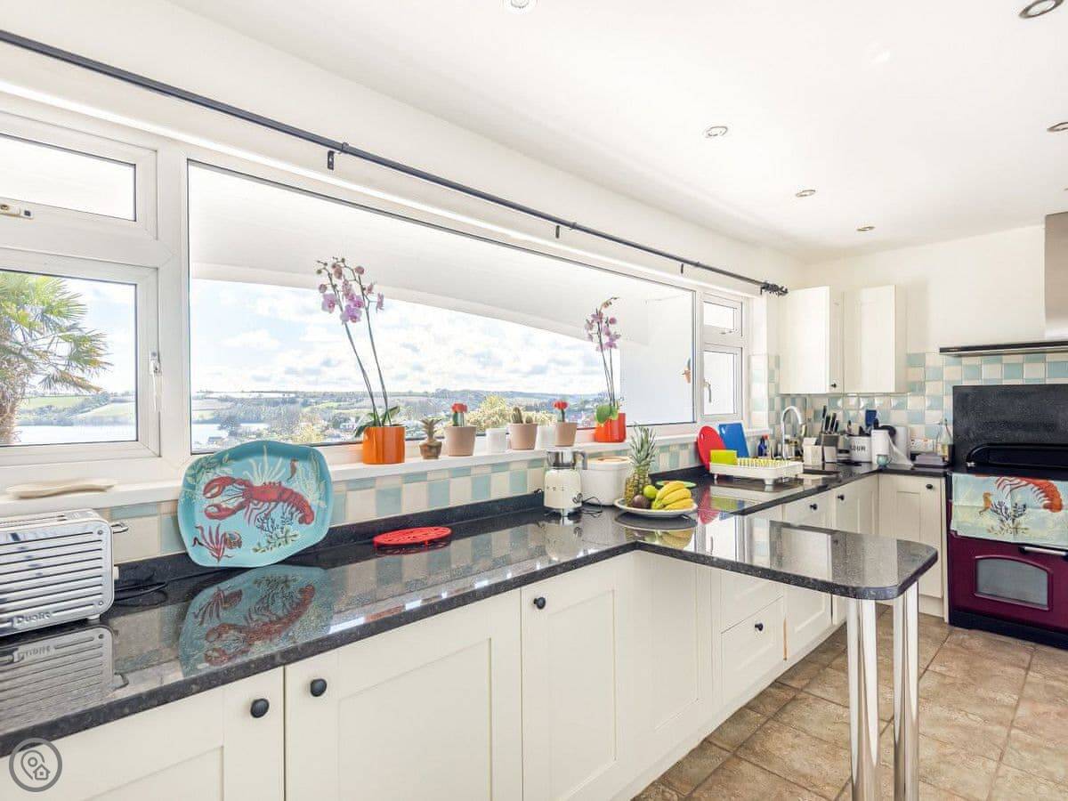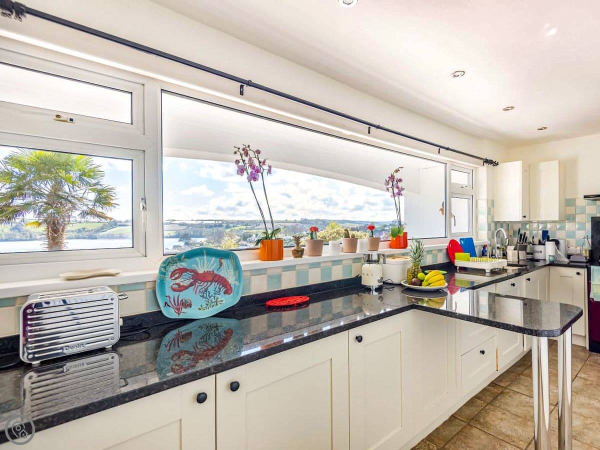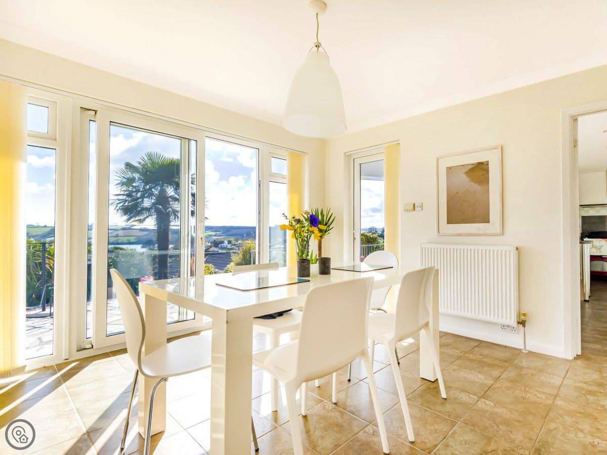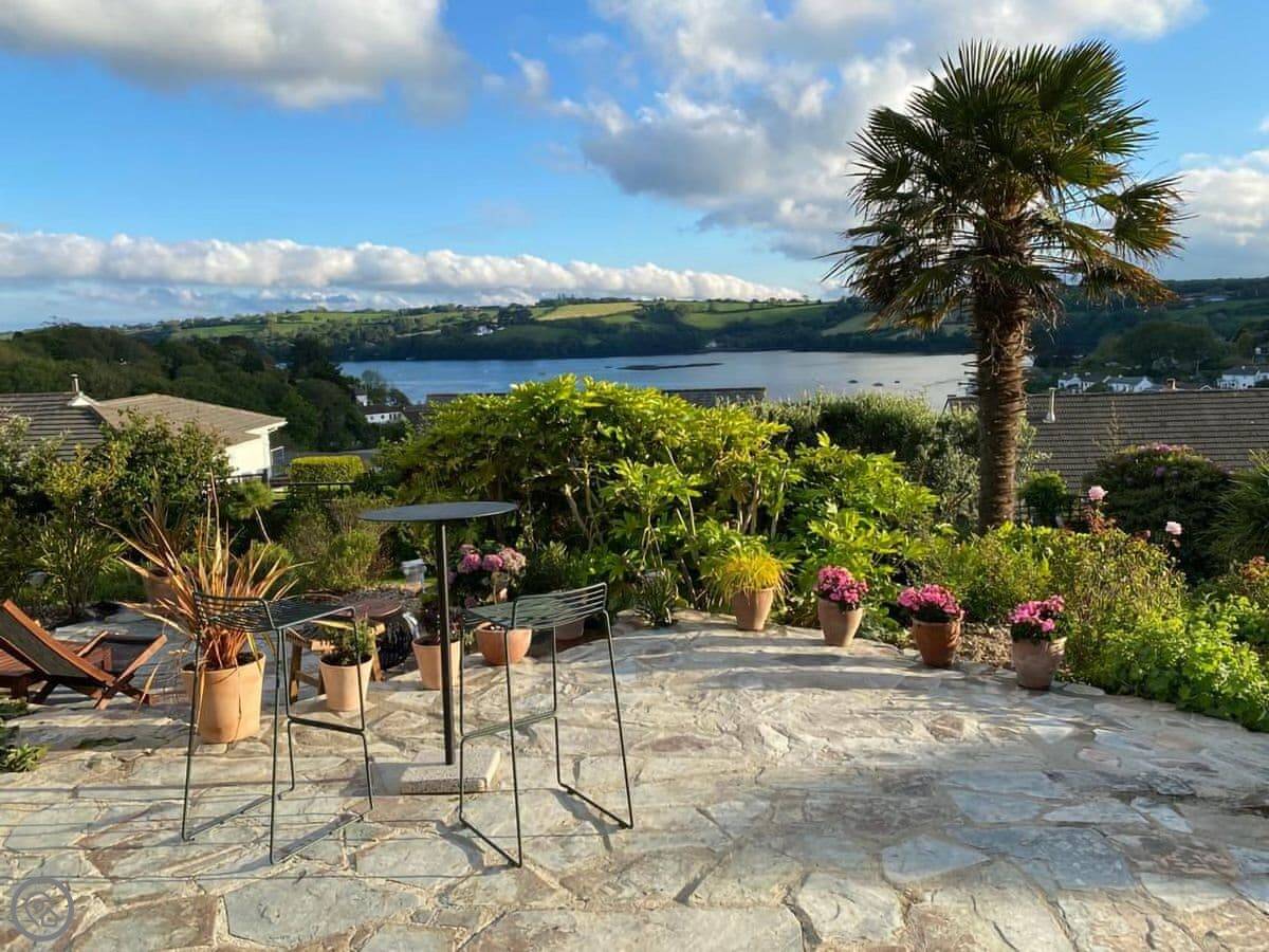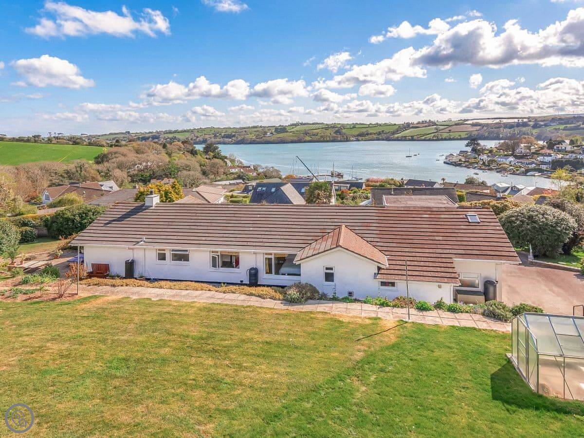 On arrival you enter a bright entrance hall with the living room to one side and the dining room to the other, both with the same idyllic views across the water. The living room is a great family space with a lovely mantelpiece and wood burner, comfy sofas and a Smart TV. The dining room has the best view of the palm and olive trees and is a great room with patio doors opening onto the garden. The spacious kitchen which also has a panoramic view of the water is fitted to a modern style. Next to the kitchen is the useful utility room, an ideal room to use for coats or dirty boots. There are a few steps leading down to the double garage which can be used for storing wetsuits, surfboards kayaks or even a small boat! There is also the use of the table tennis table and a second fridge/freezer ideal for entertaining and BBQ needs. There are three bedrooms on the ground floor level set to the rear of the property with garden views. The first has a super kingsize bed and fitted wardrobes and the second fitted wardrobe and a kingsize bed; the third is a single bedroom. Set between the bedrooms is a luxury family bathroom with an oval bath and separate shower. The master bedroom is located above the garage a few steps up from the kitchen it has its own balcony with expansive views towards Carrick Roads and has a modern style en-suite shower room. The extensive gardens surround the property providing plenty of seating areas to either take in the view or sunbathe. The large front terrace area has three different seating areas that give the best views. The second patio to the side is the ideal spot for relaxing on sun loungers to read a book or enjoy the agapanthus and eucalyptus tree. The children can enjoy the large lawn area great for games or perhaps make use of the BBQ area at the top of the garden with panoramic views.