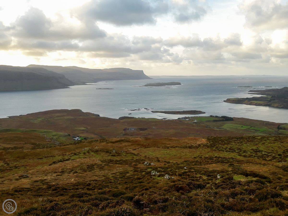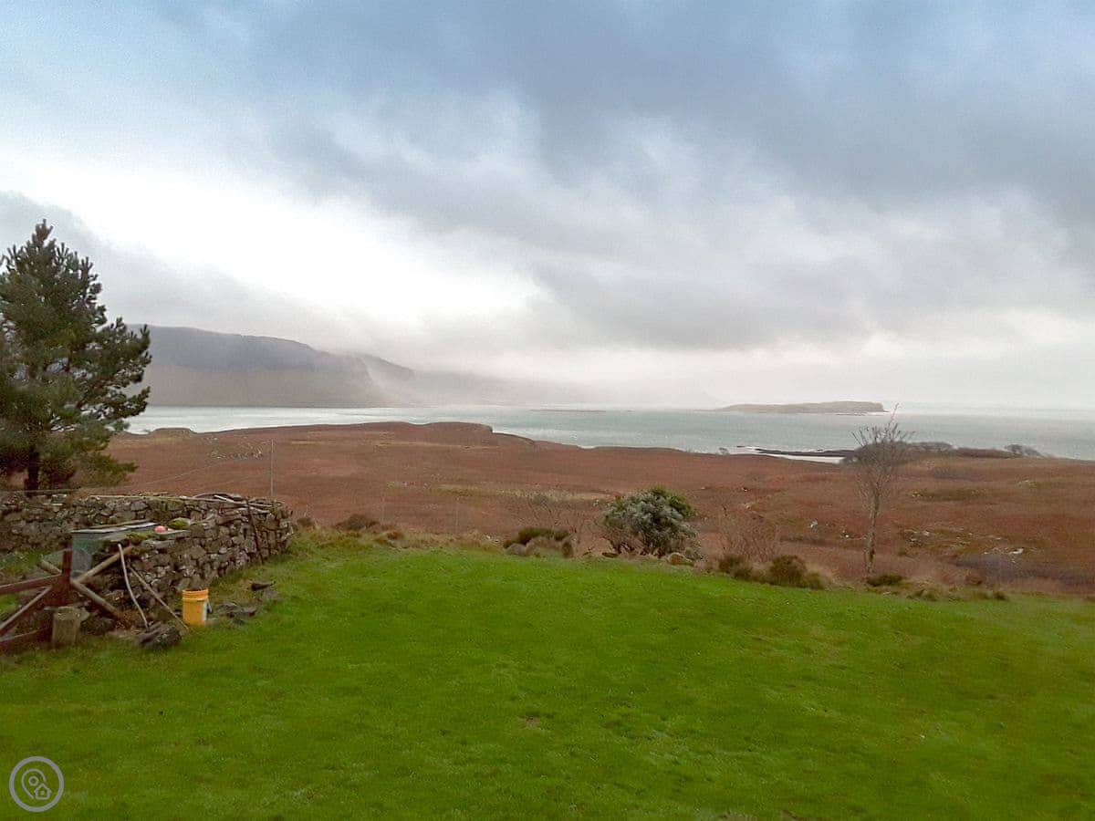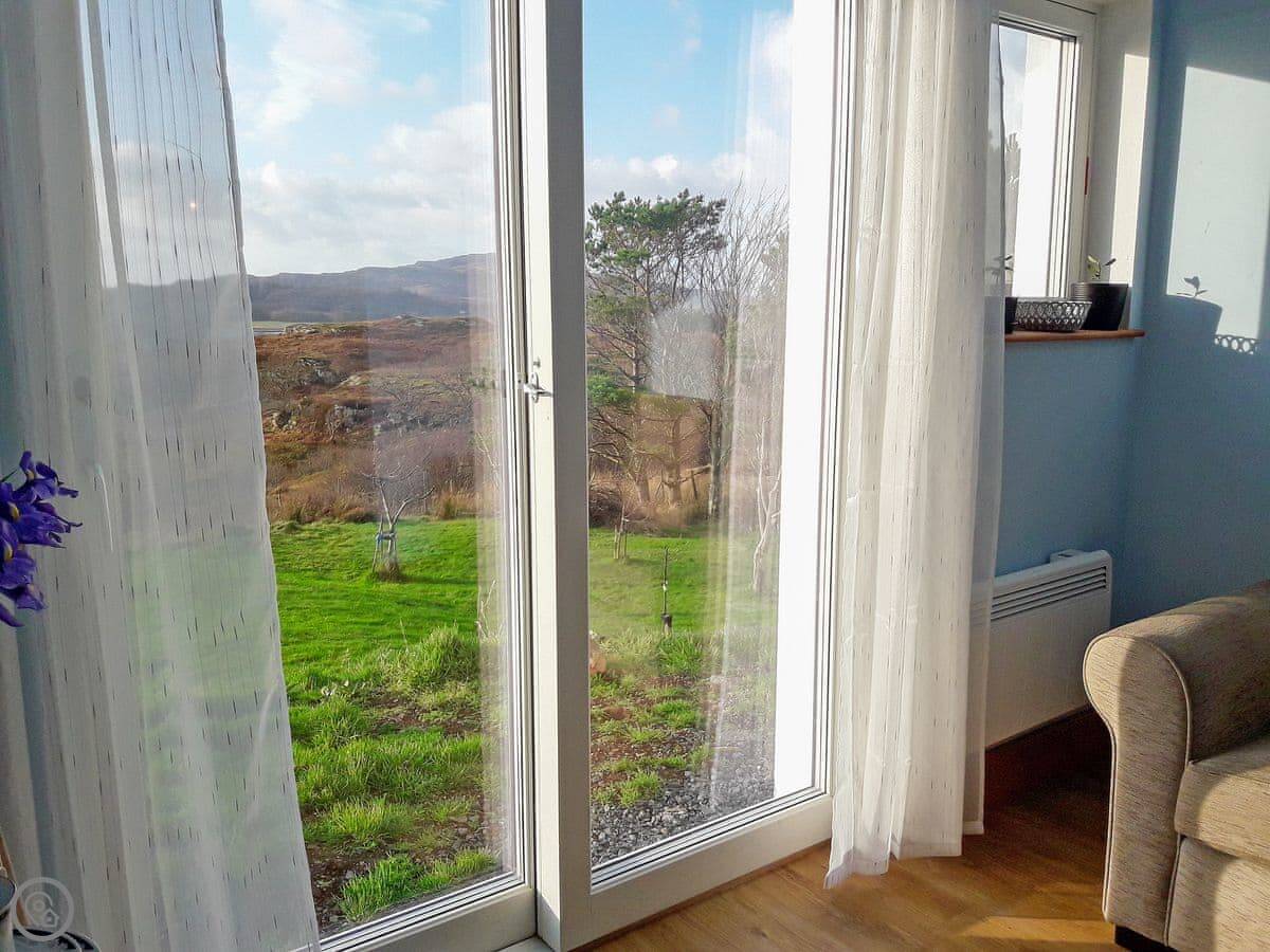 Island Views is a small flat for two people on the west coast of Mull, near Ulva Ferry. We had it renovated a few years ago. The main thing is the view. There are big patio doors in the living area that look straight out over the water to the island of Ulva. It's a great spot for watching the weather change.