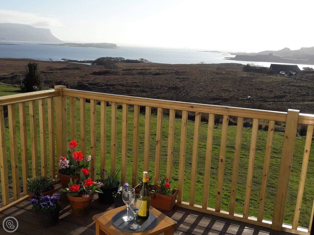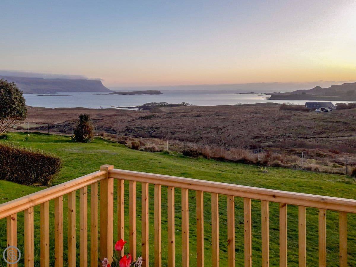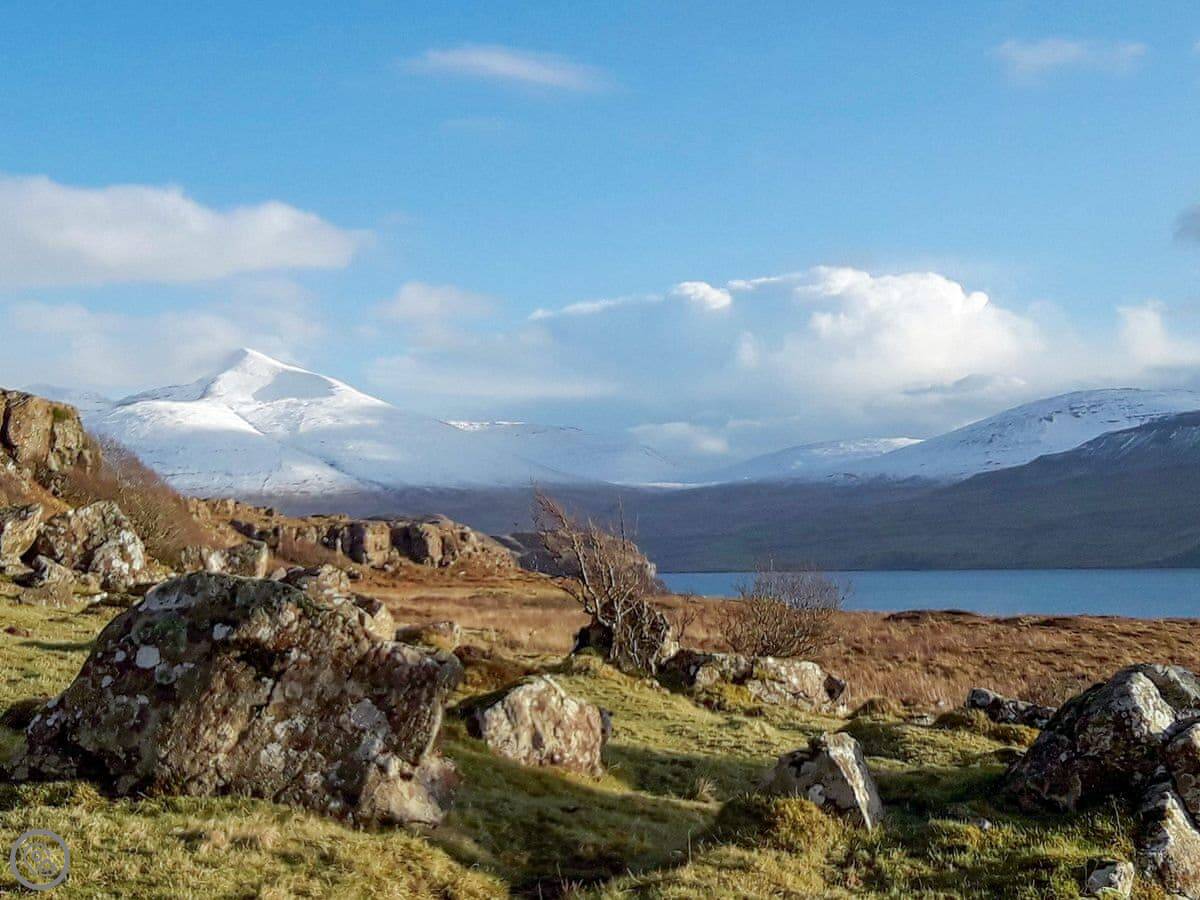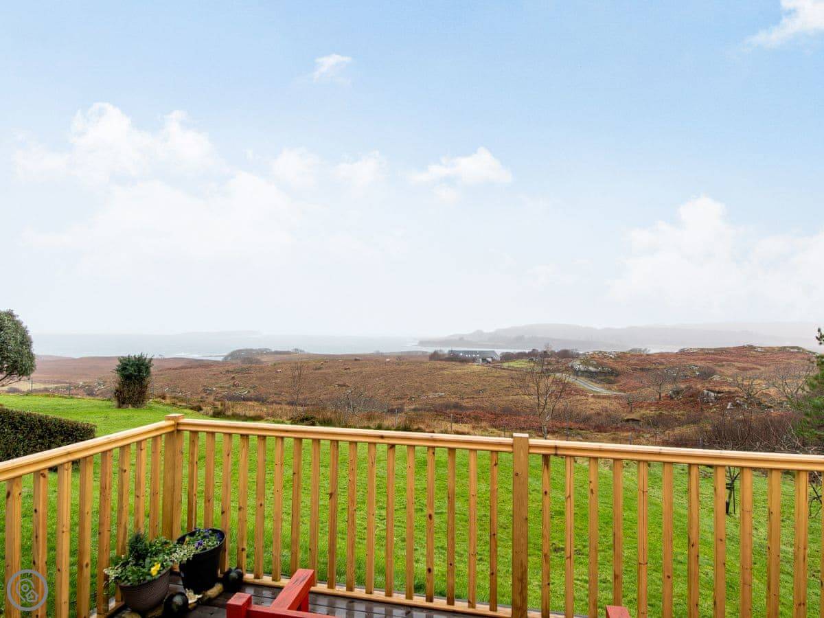 Island Views is a small flat for two people on the west coast of Mull, near Ulva Ferry. We had it renovated a few years ago. The main thing is the view. There are big patio doors in the living area that look straight out over the water to the island of Ulva. It's a great spot for watching the weather change.