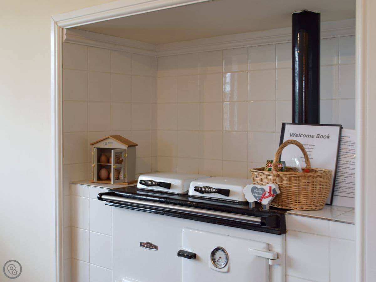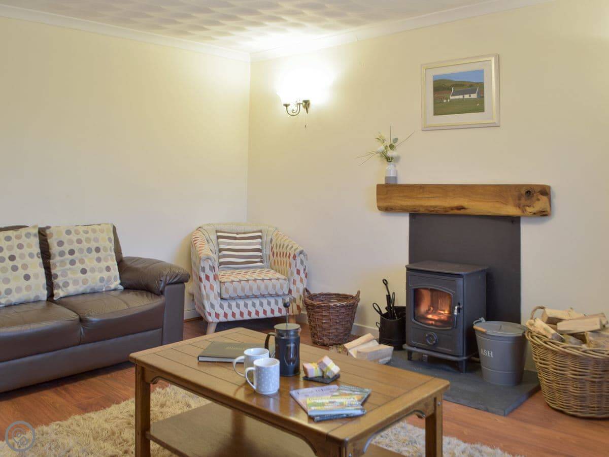 The living room has a wood burner. The kitchen is open plan with a dining table. There's a dishwasher and a washing machine. Bedding and towels are included. You can park right outside.
