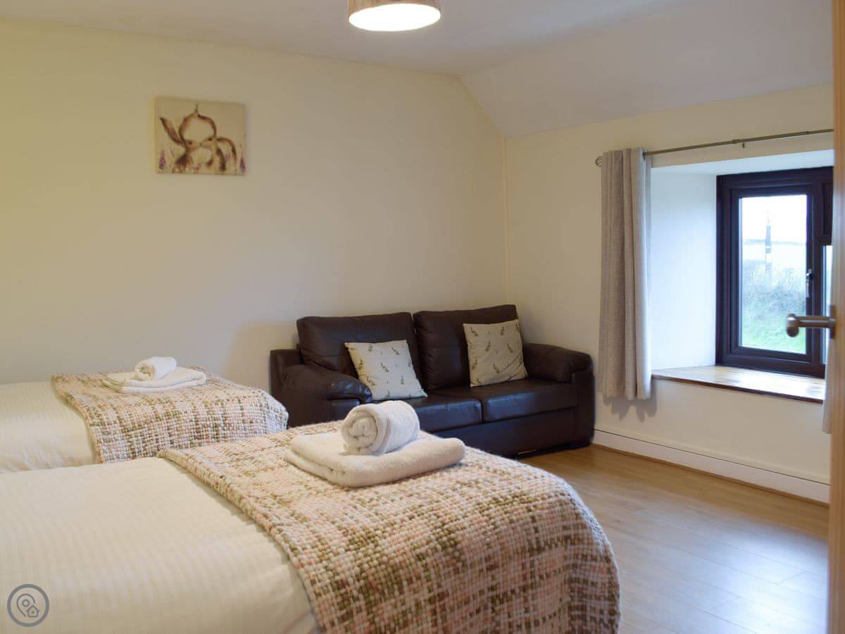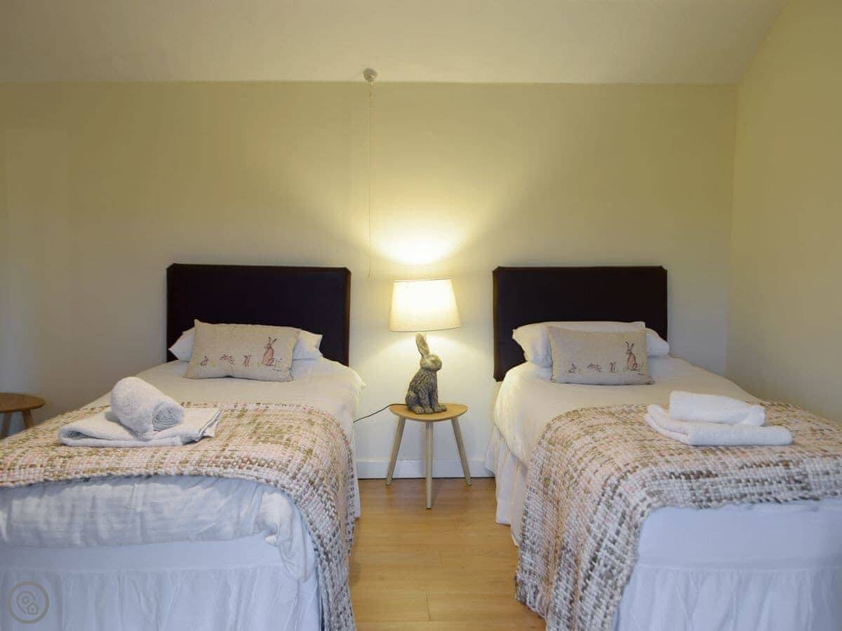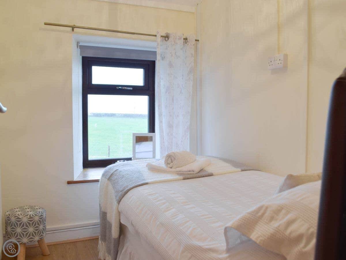 It sleeps six. Three bedrooms upstairs, one bathroom. It's got a 4 Star rating. The place is clean and comfortable. The stairs are a typical cottage staircase.